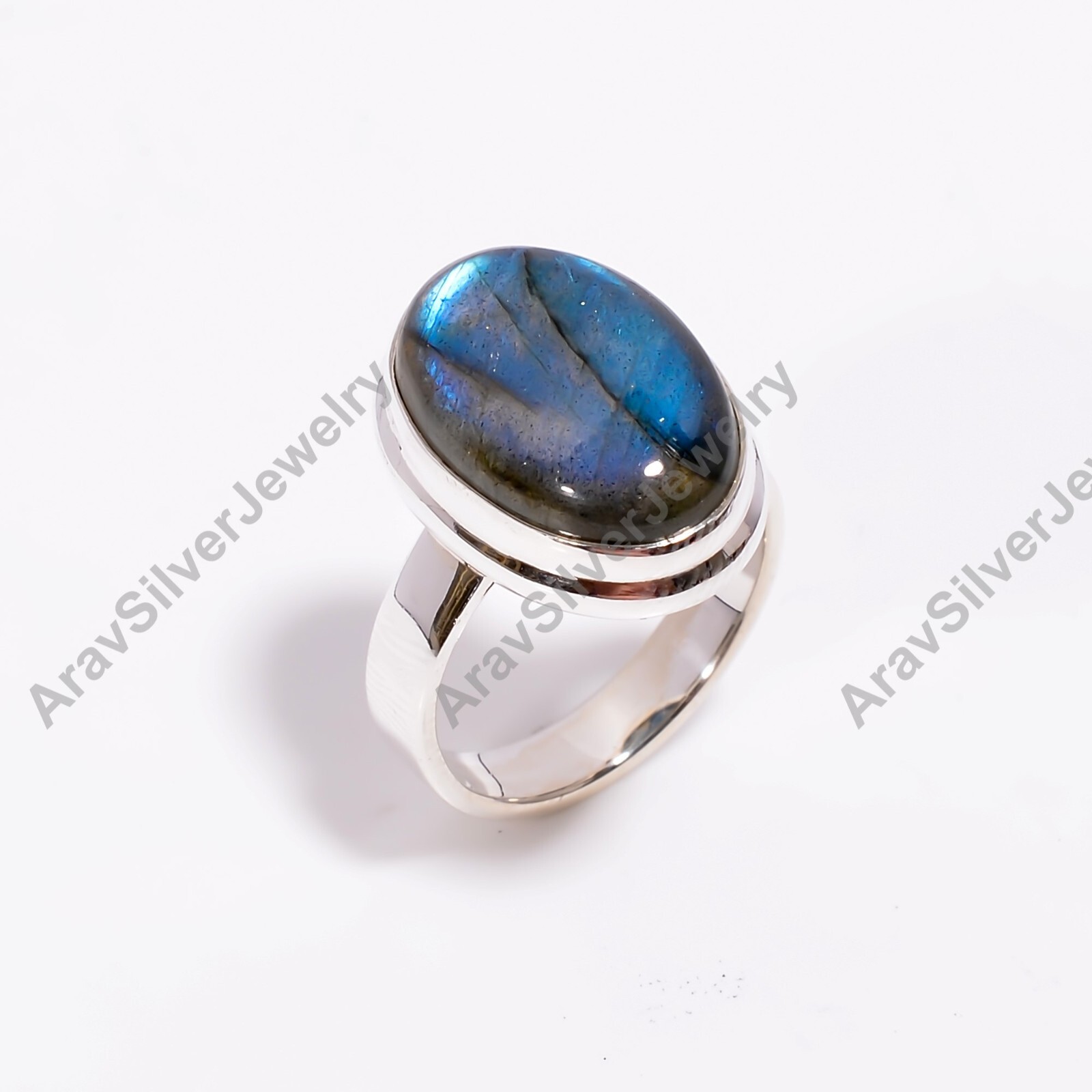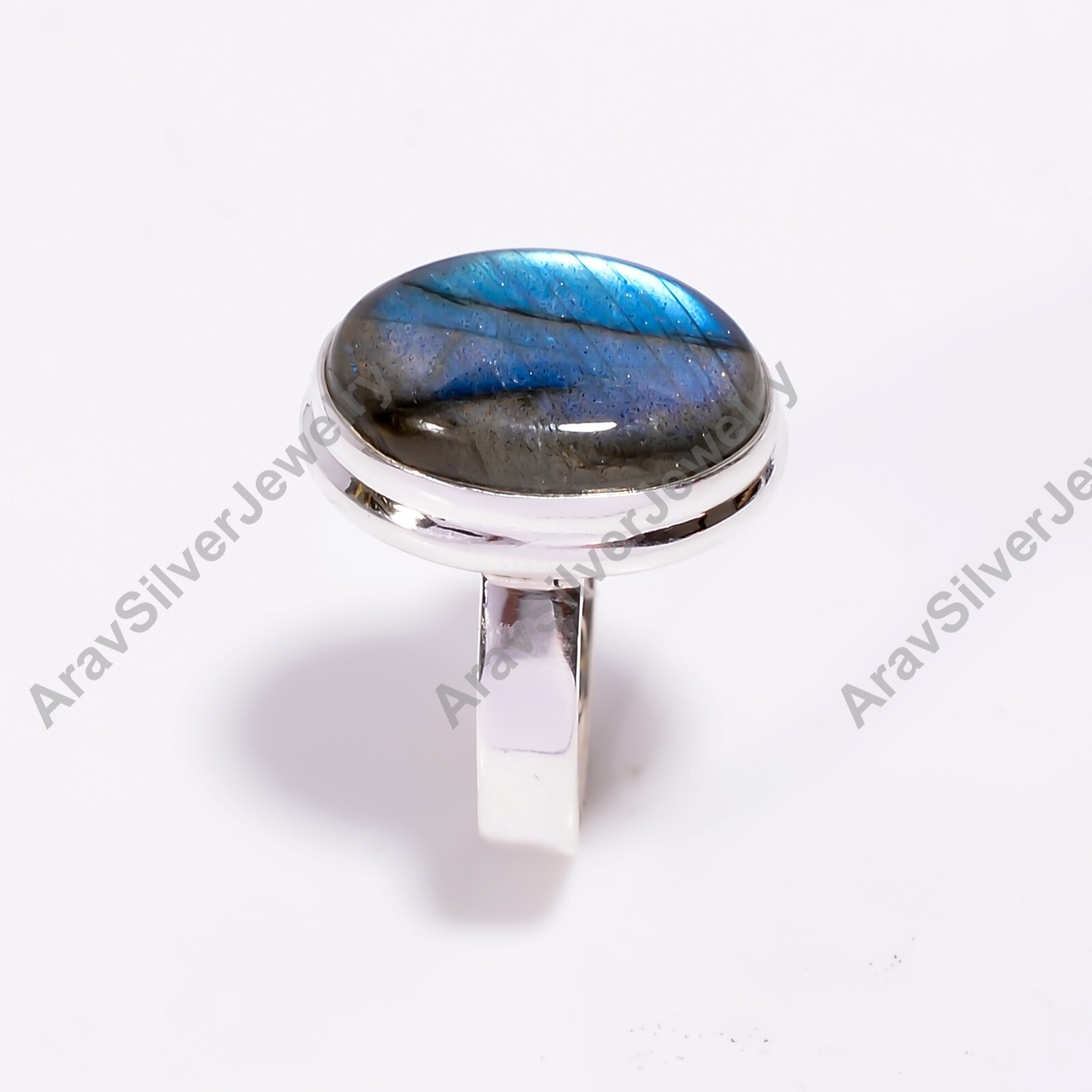 как выглядит Natural Blue Labradorite Ring 925 Sterling Silver Handmade Statement Boho Rings фото