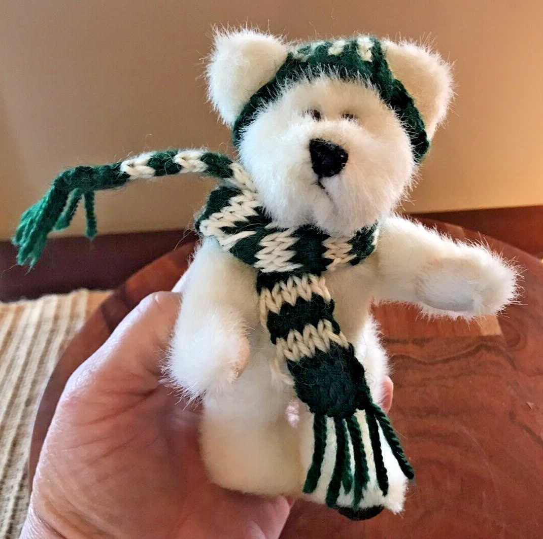 • The Boyds Collection White Bear 1990-1999 Green White Stripe Scarf Hat 6"