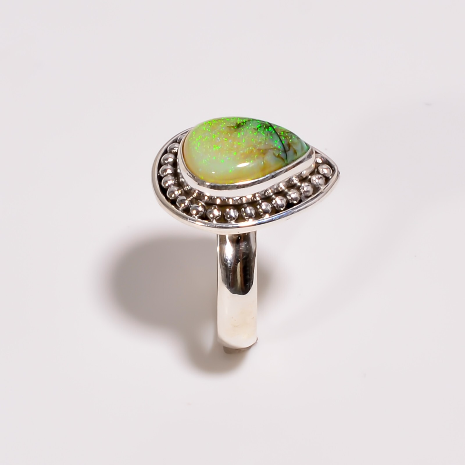 Monarch Opal Ring Rainbow Stone 925 Sterling Silver Statement Boho Rings Jewelry