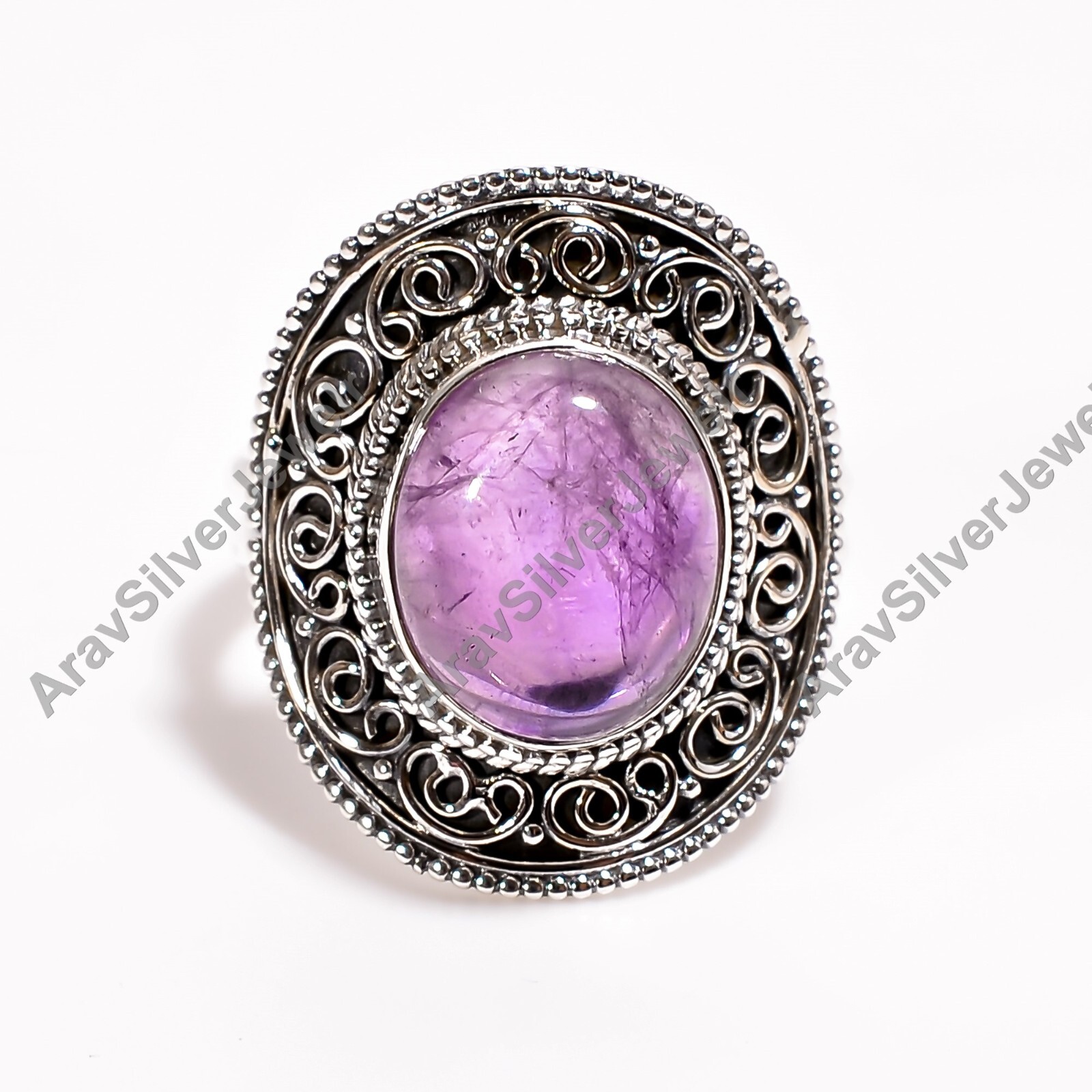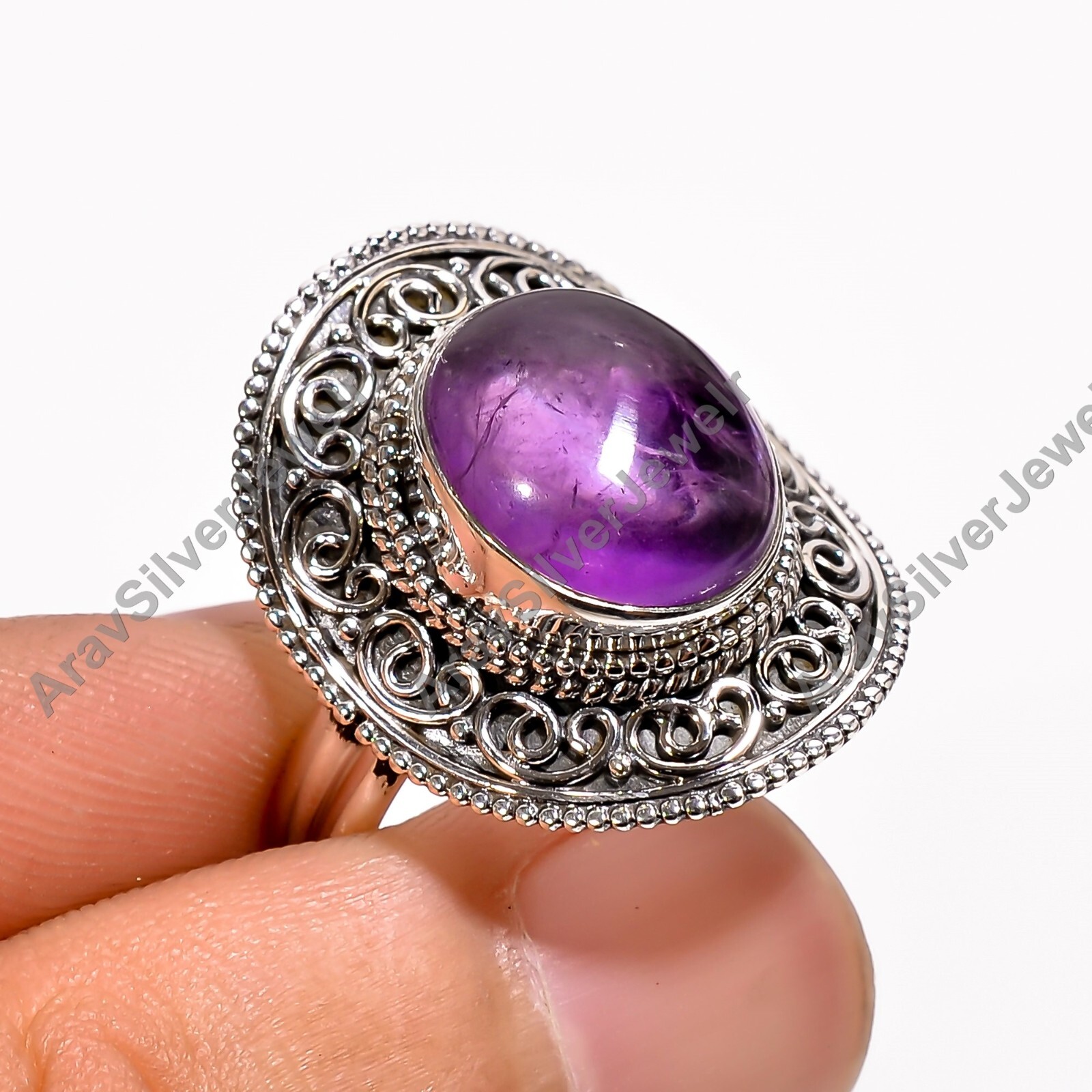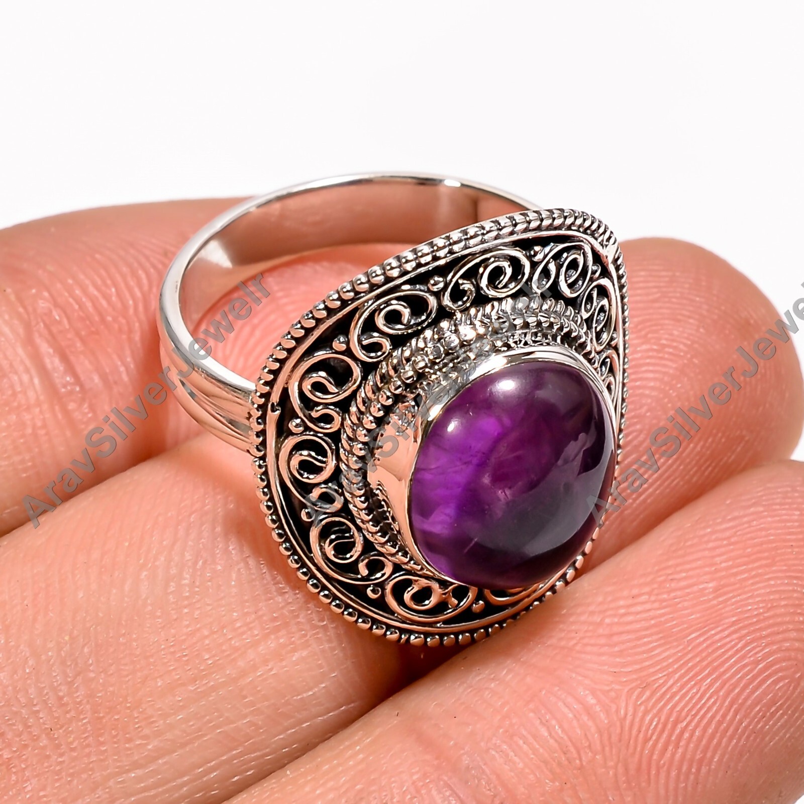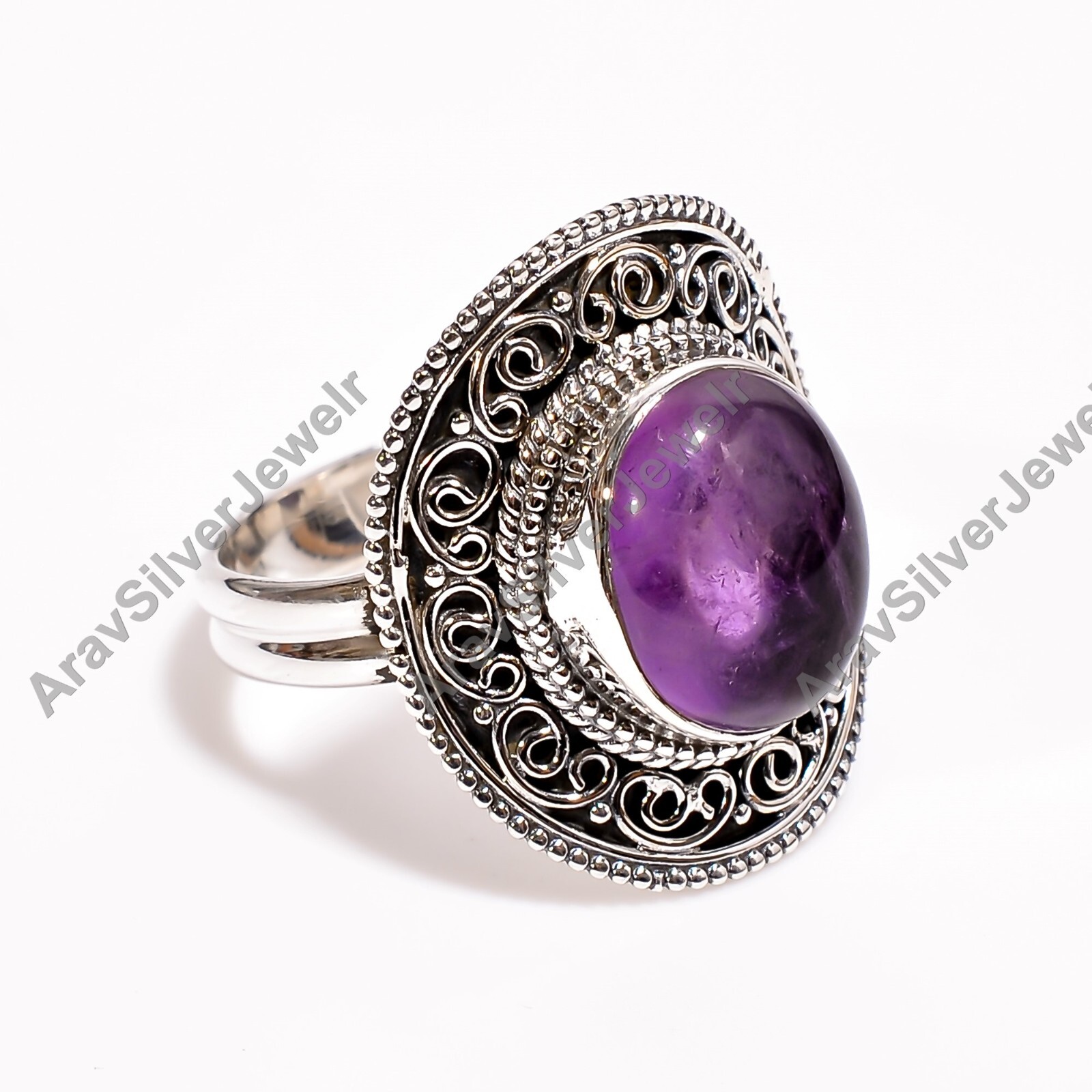 Natural Amethyst Ring Purple Stone 925 Sterling Silver Statement Design Rings
