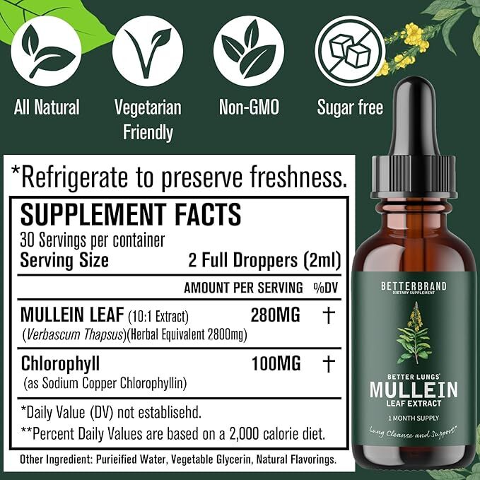 Betterbrand BetterLungs Mullein Leaf Extract Support Lung Cleanse Respirator