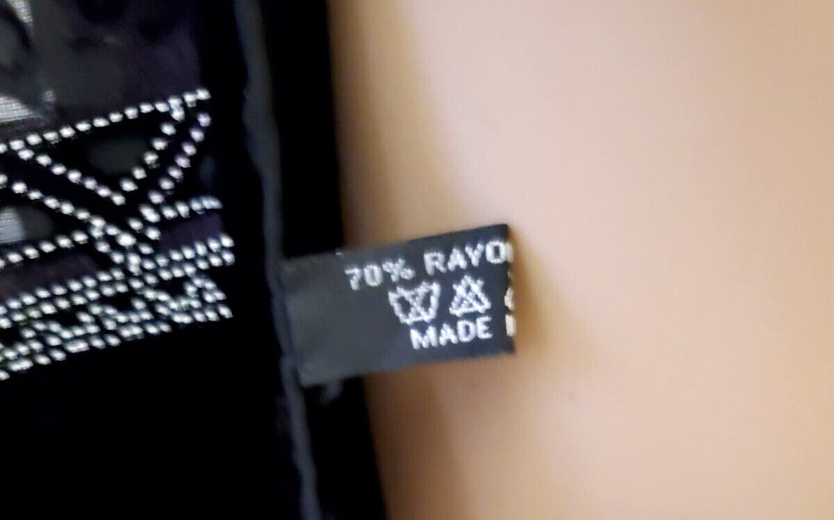 как выглядит VTG Black Burn Out Design Lined Rayon/Silk Fringe Scarf 74" L x 13" W фото