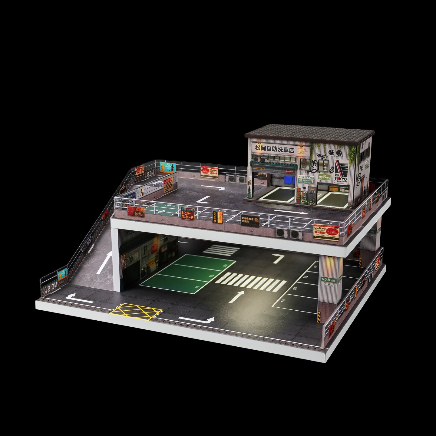 Diorama 1/64 City Car Showroom Model LED Lighting Car Garage Scene Model Display