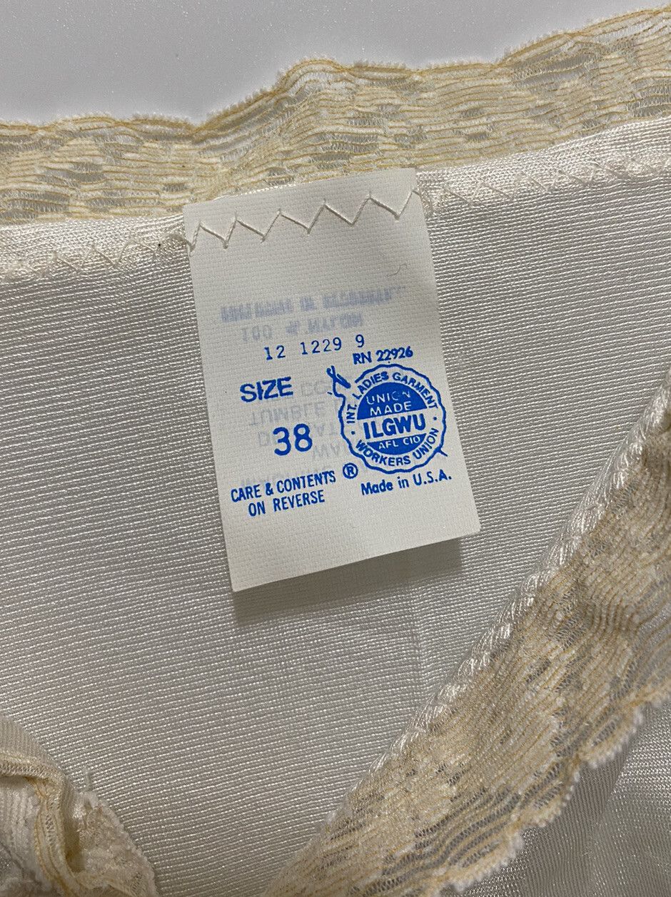 Vtg Union Made Nylon Full Lace Lingerie Dress Slip White Size 38 LARGE USA