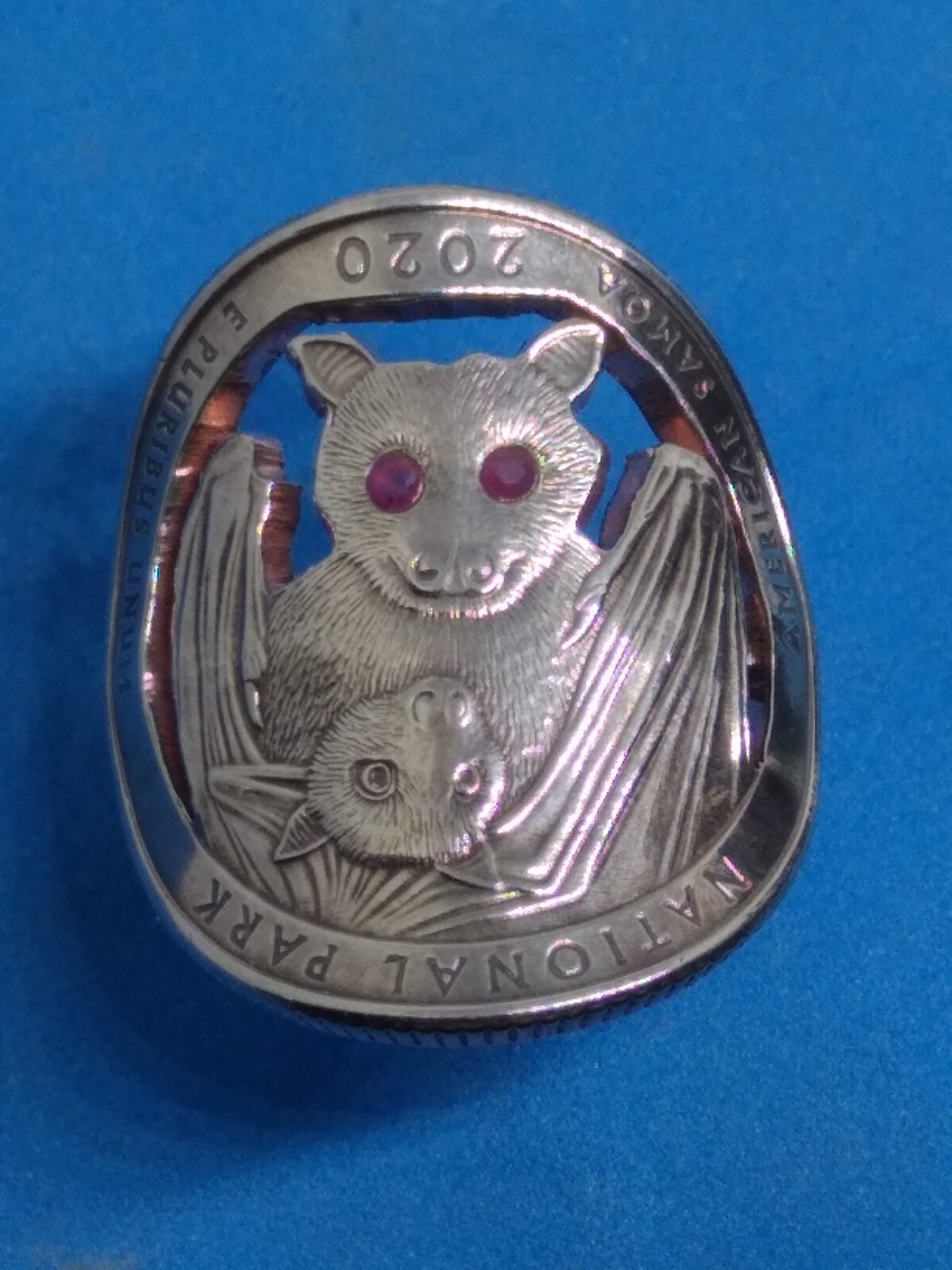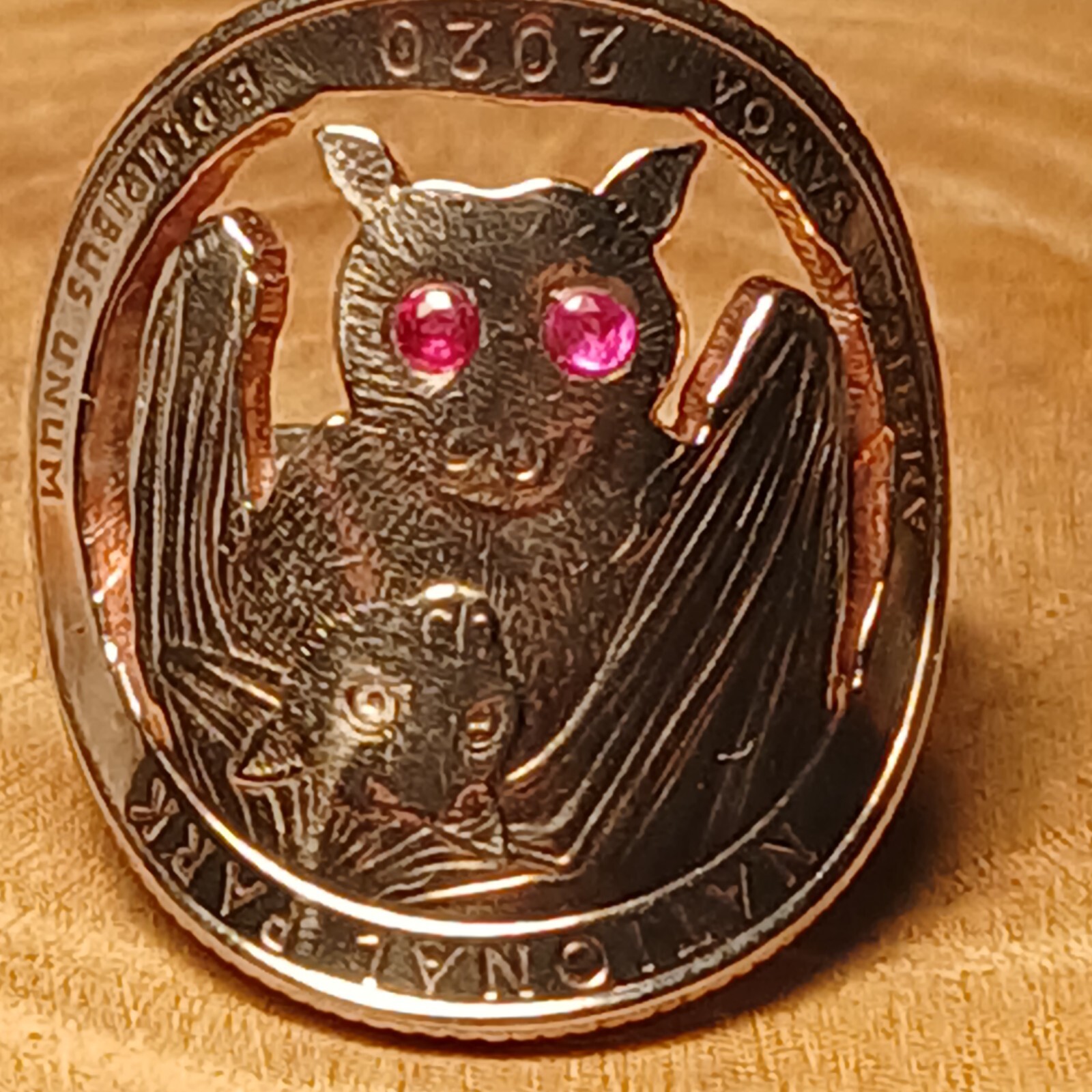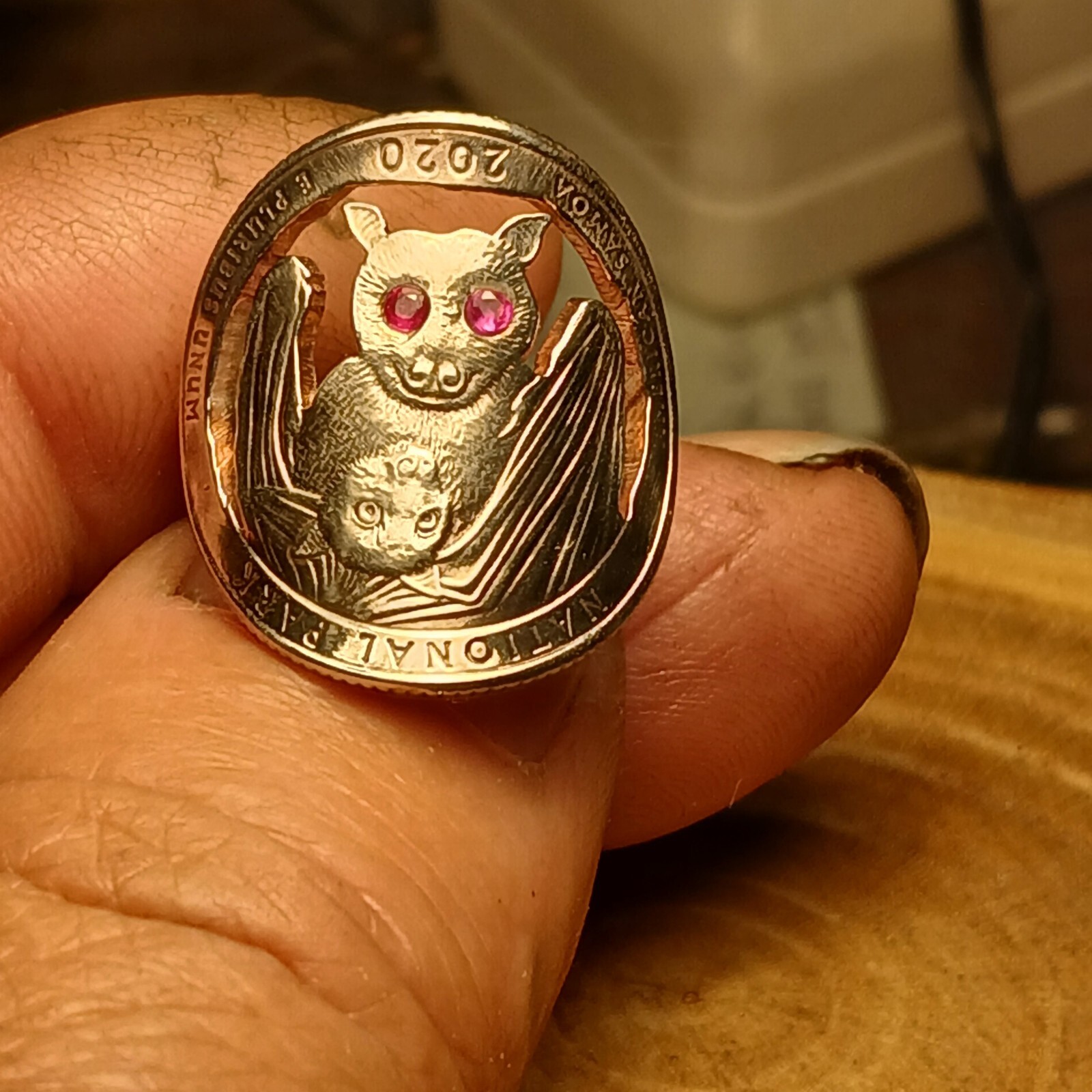 CUTE 2020 AMERICAN SAMOAN BAT QUARTER CUTOUT RING Corona bat real rubies
