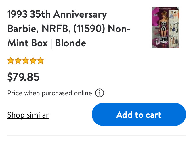 как выглядит New Golden 50th Anniversary Barbie an Opened 35th Anniversary Barbie 1990s фото