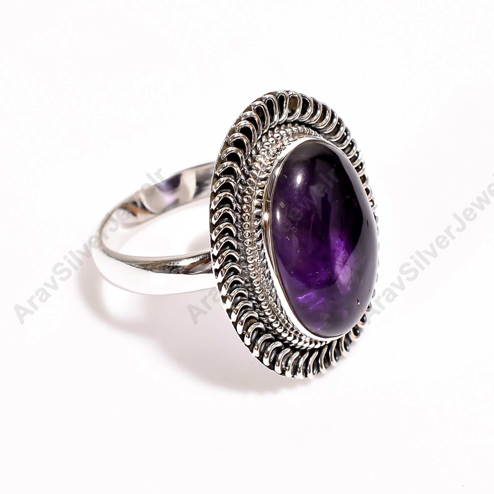 Natural Purple Amethyst Ring 925 Sterling Silver Handmade Design Boho Rings