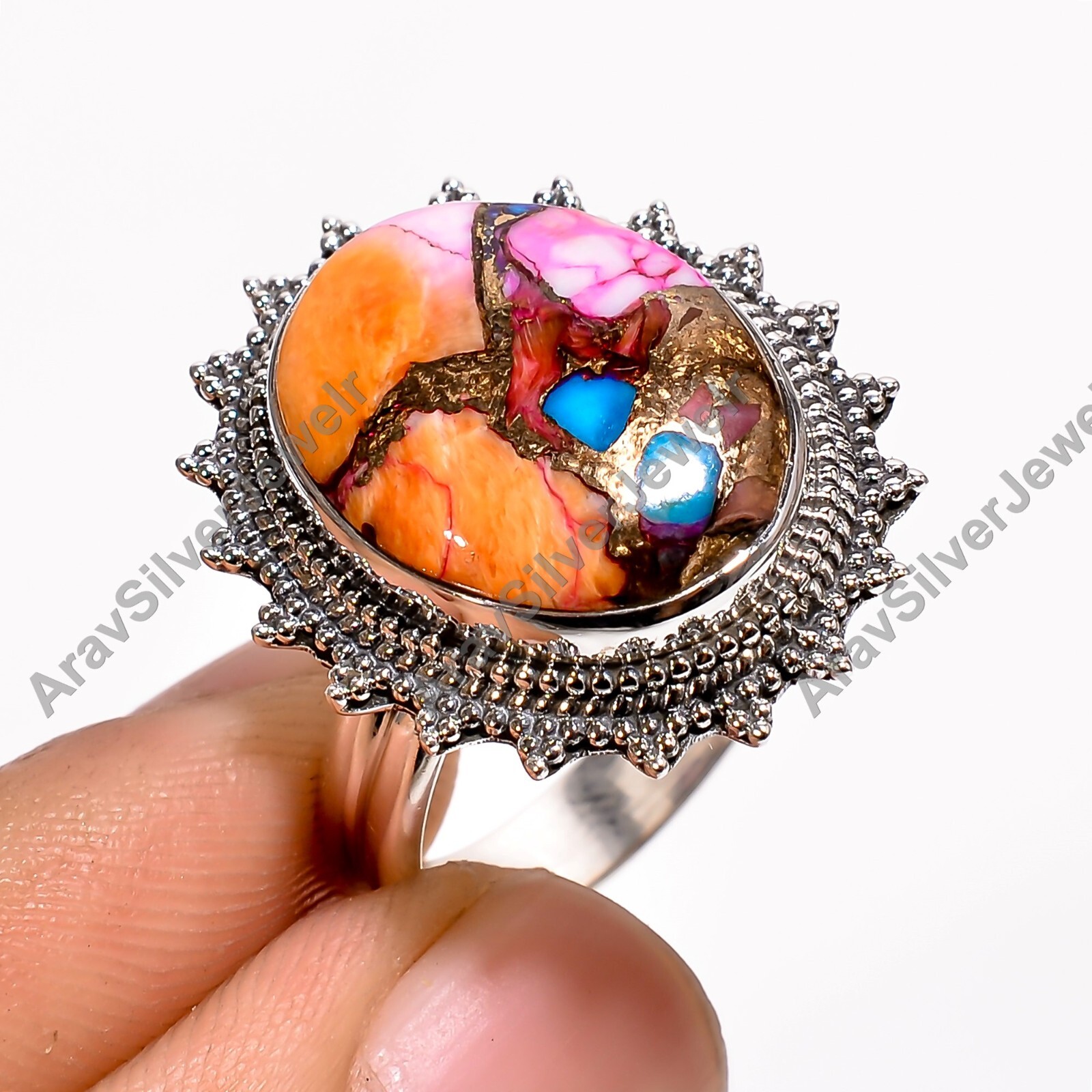 как выглядит Oyster Turquoise Ring 925 Sterling Silver Handmade Design Statement Boho Rings фото