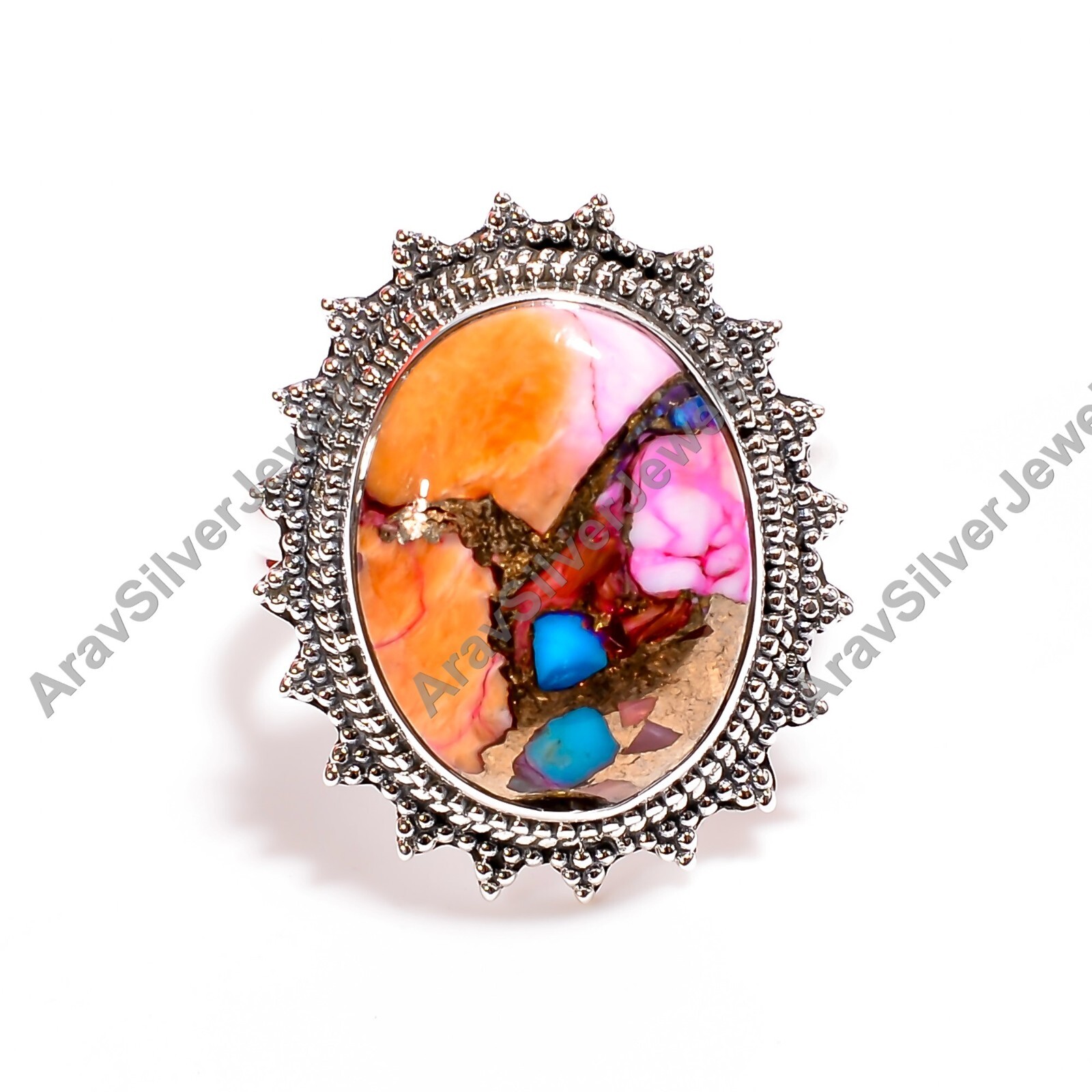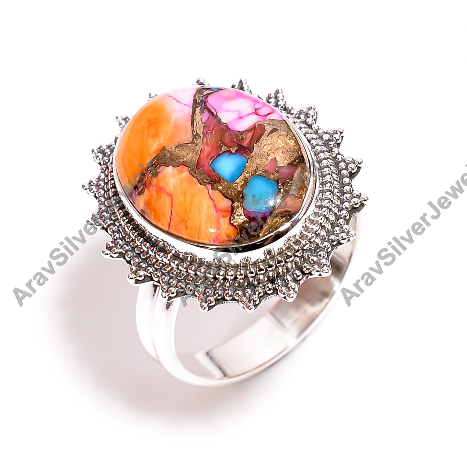 Oyster Turquoise Ring 925 Sterling Silver Handmade Design Statement Boho Rings