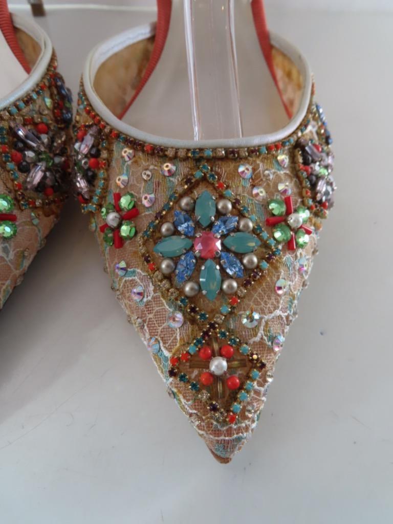 как выглядит Rene Caovilla Beige/Multicolor Beaded Pointed Toe Slingback Heels 40 фото
