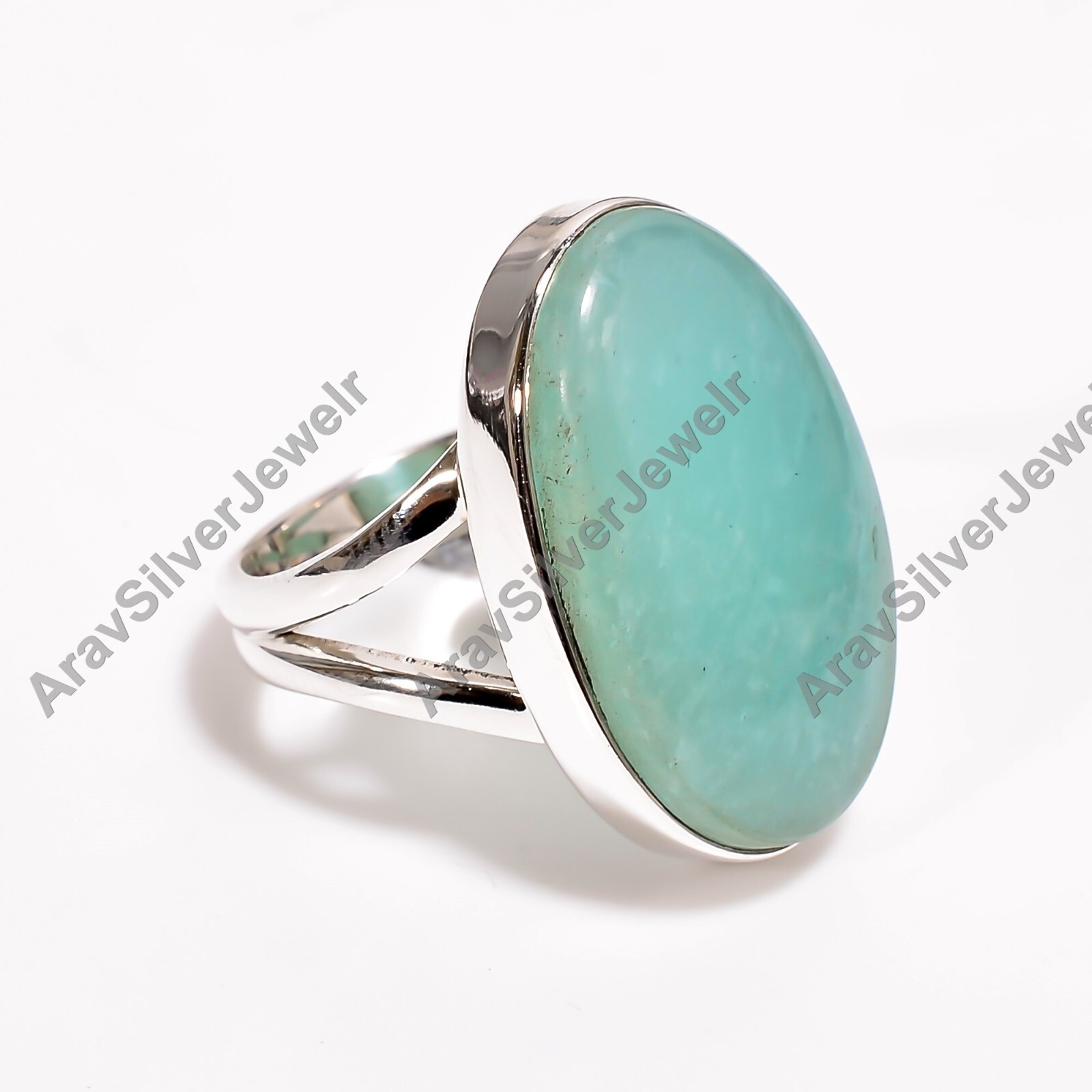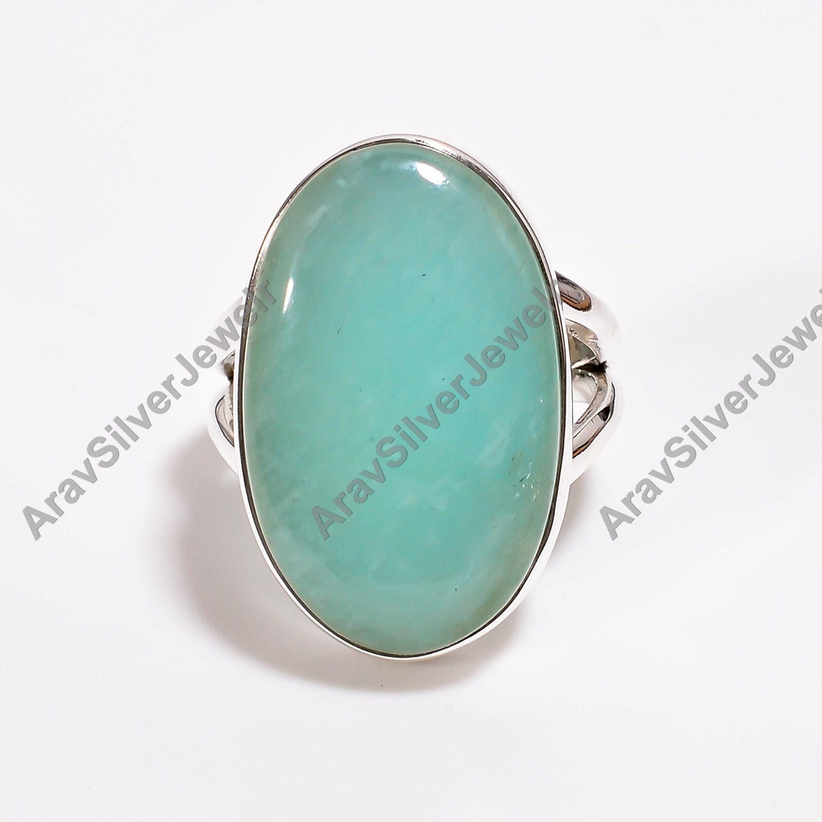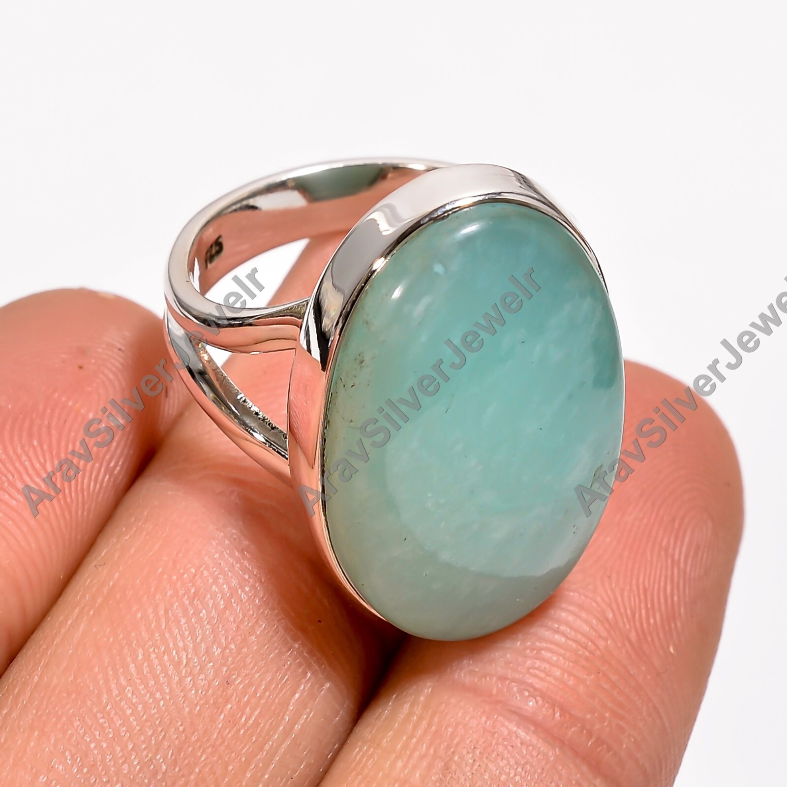 Natural Amazonite Gemstone Ring Green Stone 925 Sterling Silver Statement Rings