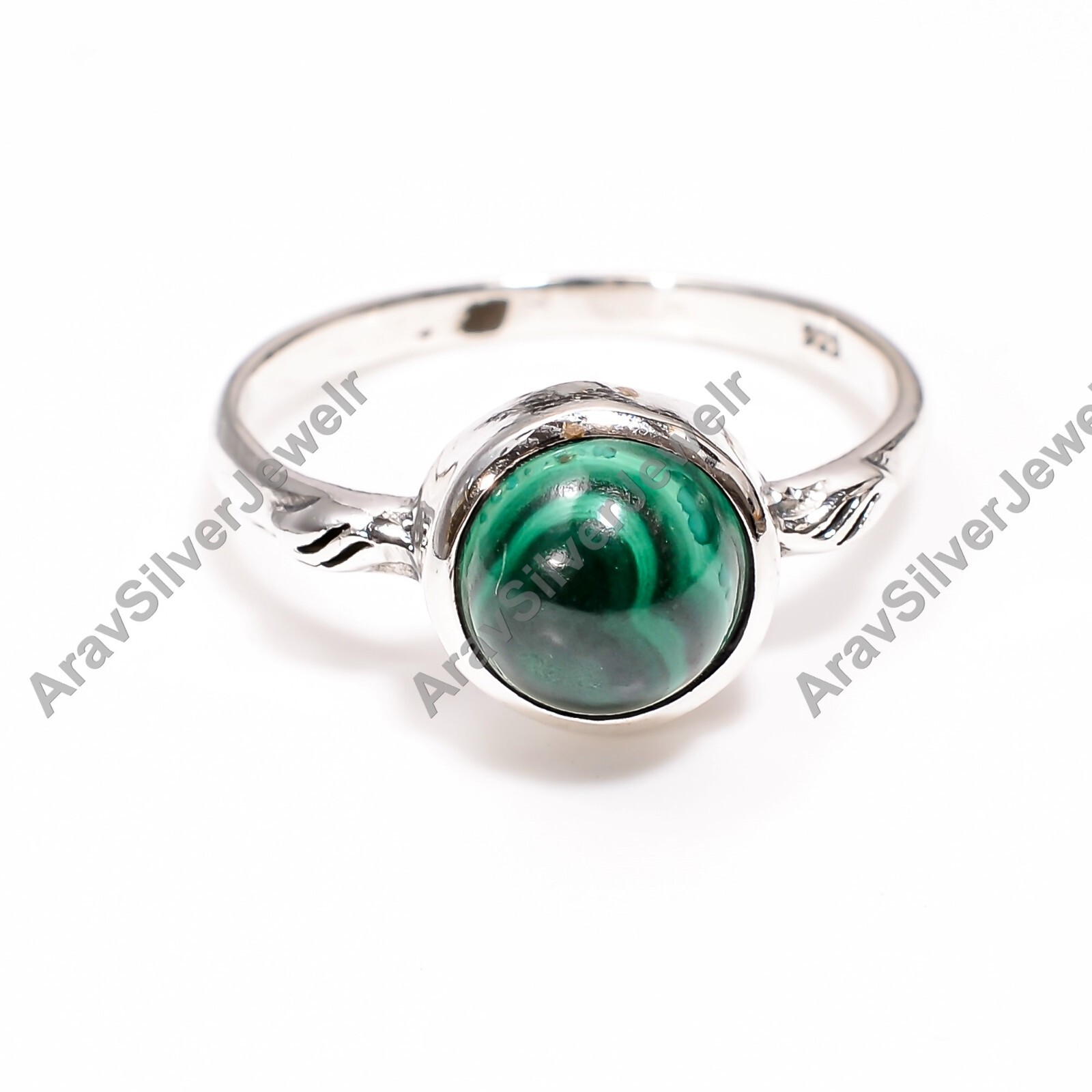 Natural Green Malachite Gemstone Ring 925 Sterling Silver Engagement Rings