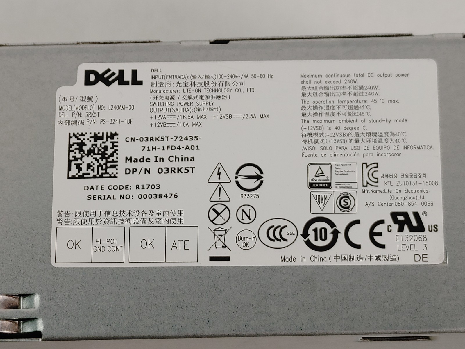 Dell OptiPlex 7040 SFF 240W 8 Pin Desktop Power Supply 3RK5T
