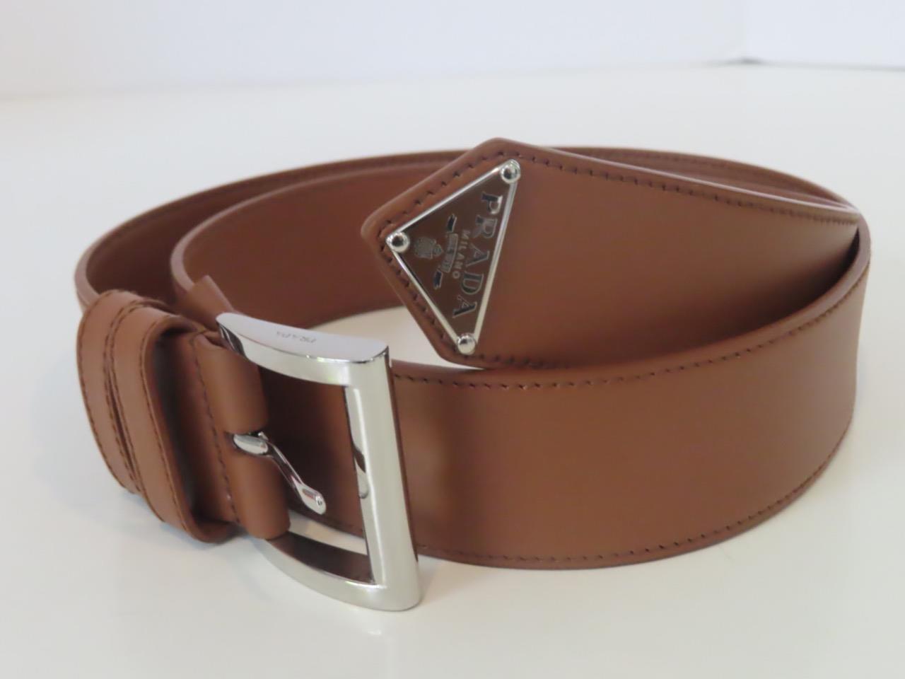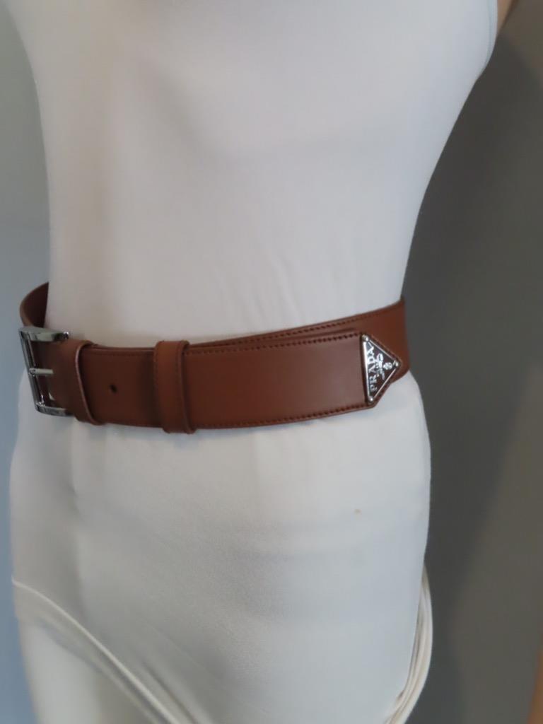 как выглядит PRADA Brown Leather Enamel Logo Belt Size 75/30 фото