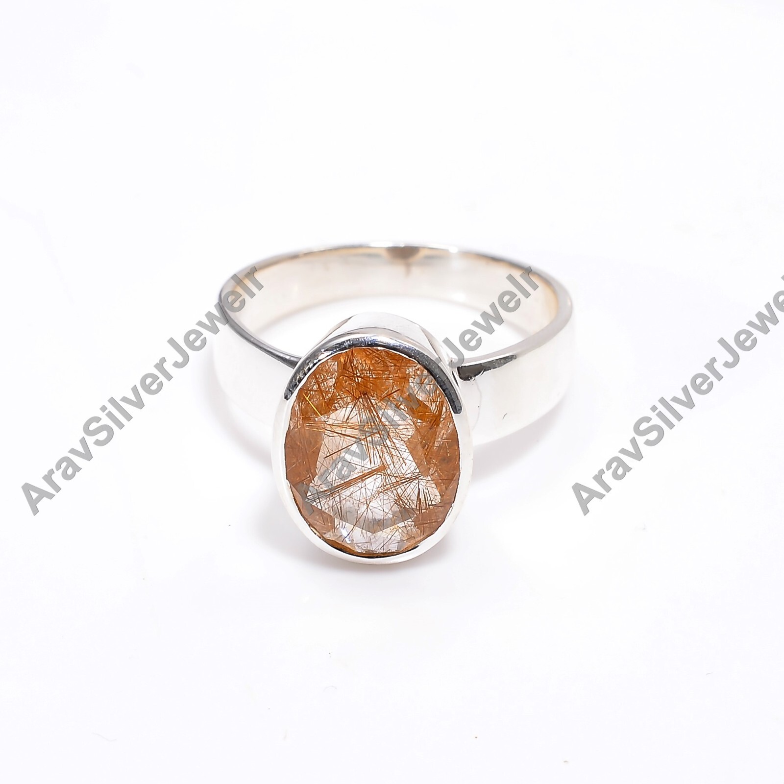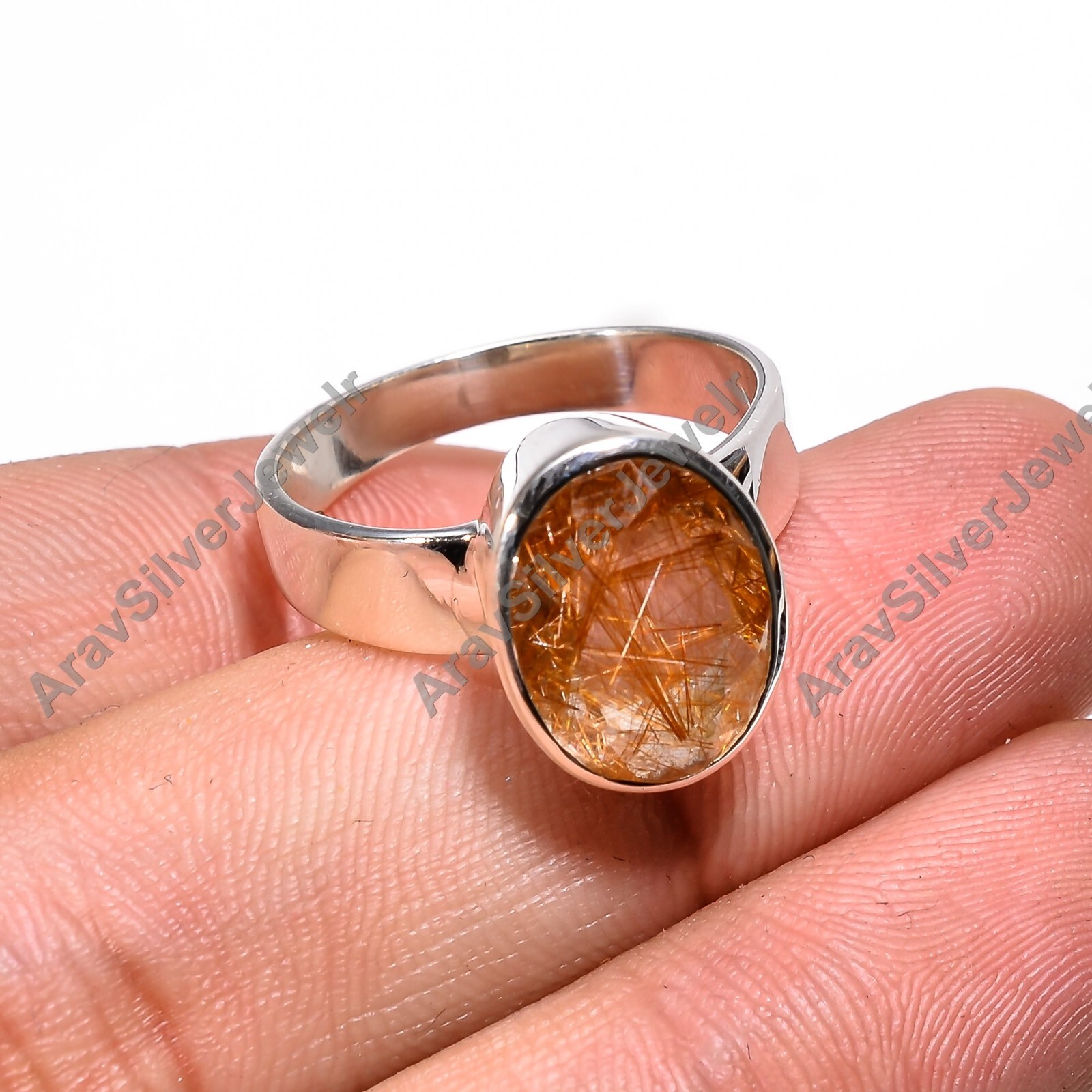 Golden Rutile Quartz Gemstone Ring 925 Sterling Silver Statement Boho Rings