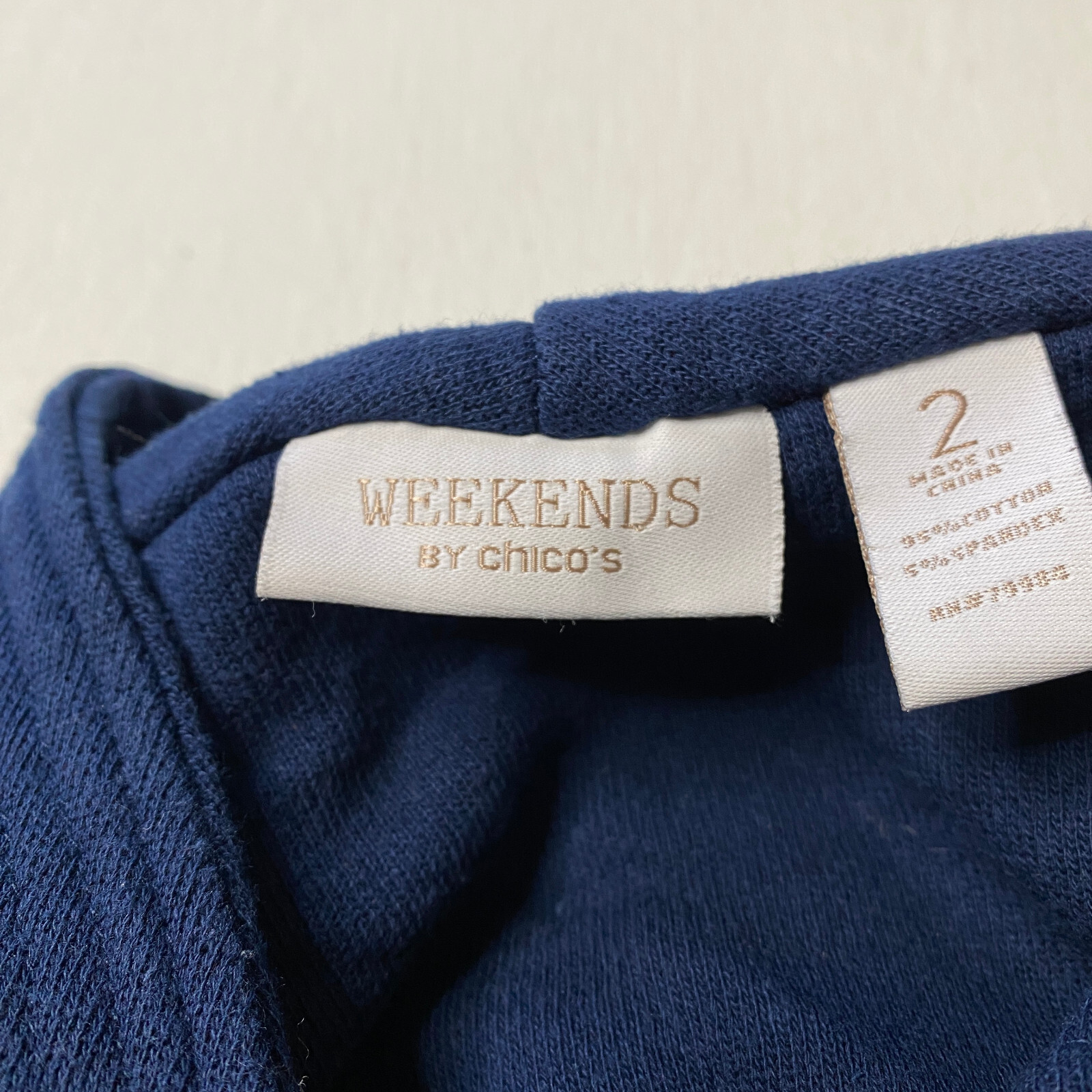 как выглядит Weekends By Chicos Womens Vest Sz 2 Sz L Blue Open Drape Athleisure Wear фото