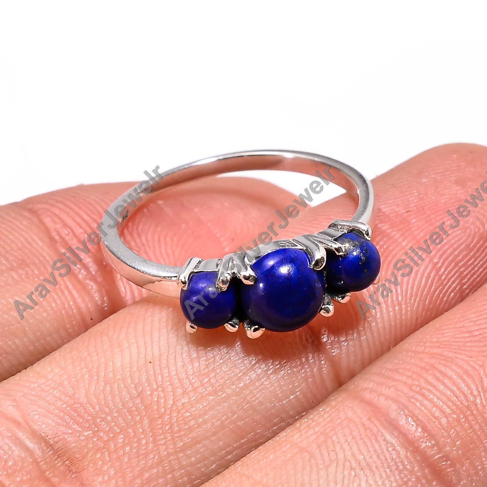 Natural Lapis Lazuli Ring Blue Stone 925 Sterling Silver Promise Rings for Her