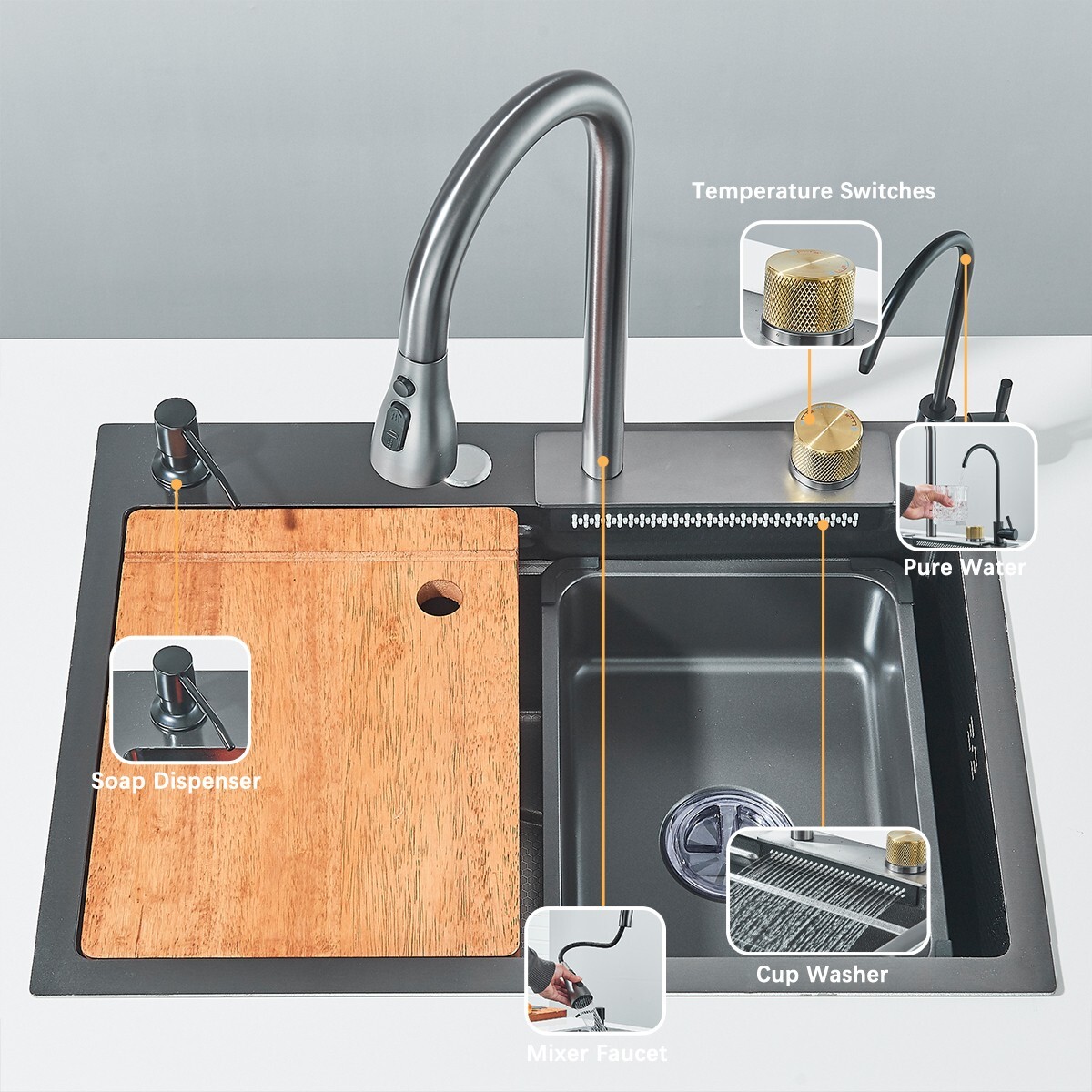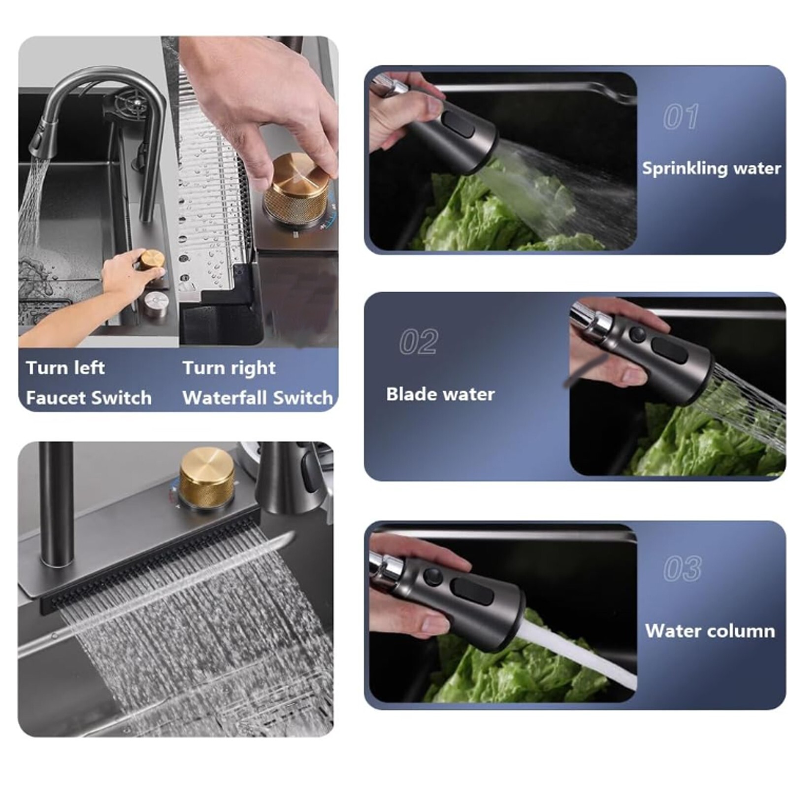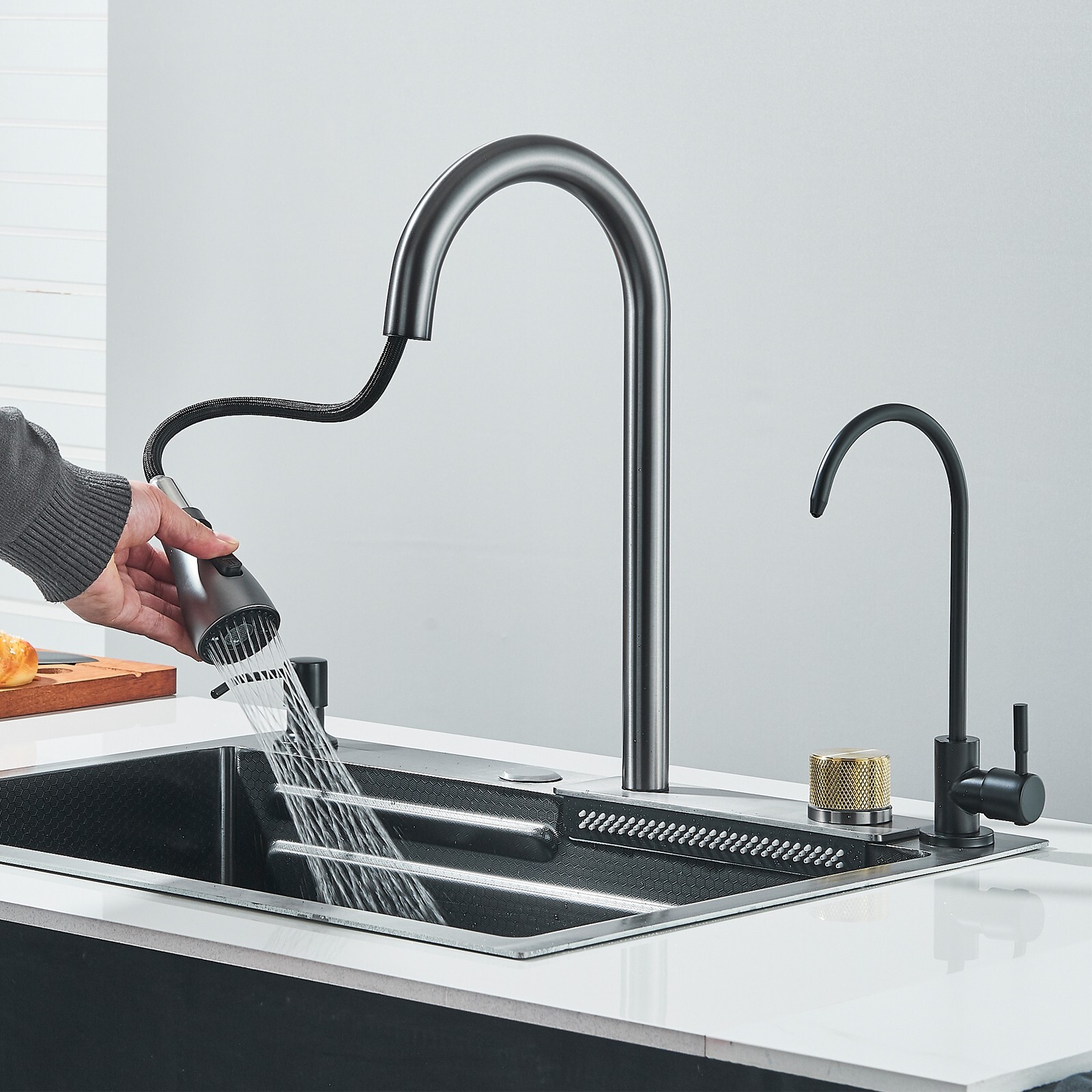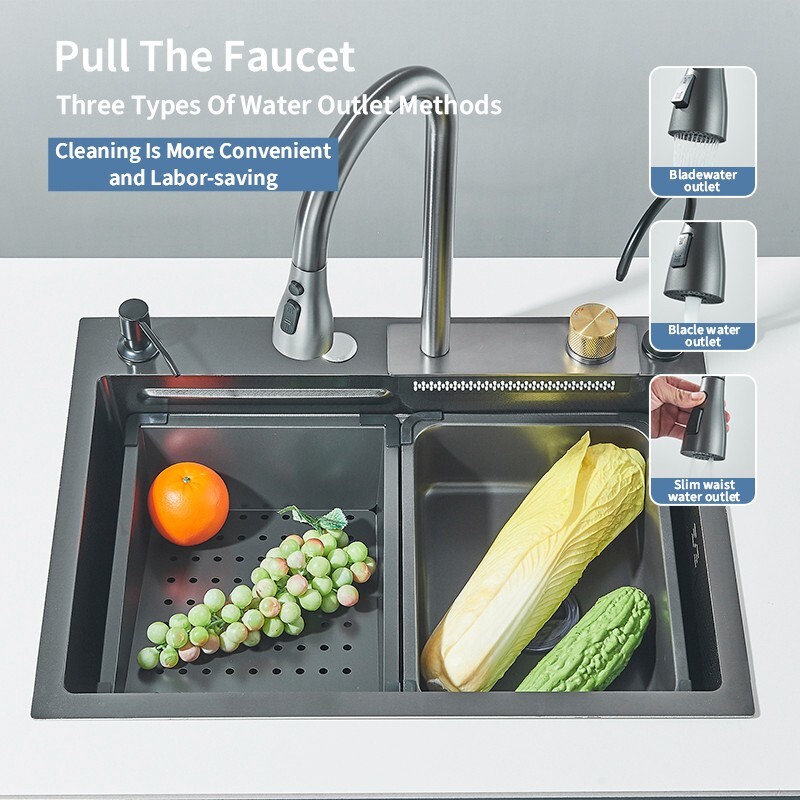 как выглядит Flying Rain Stainless Steel Waterfall Kitchen Sink W/ Kitchen Faucet Single Bowl фото