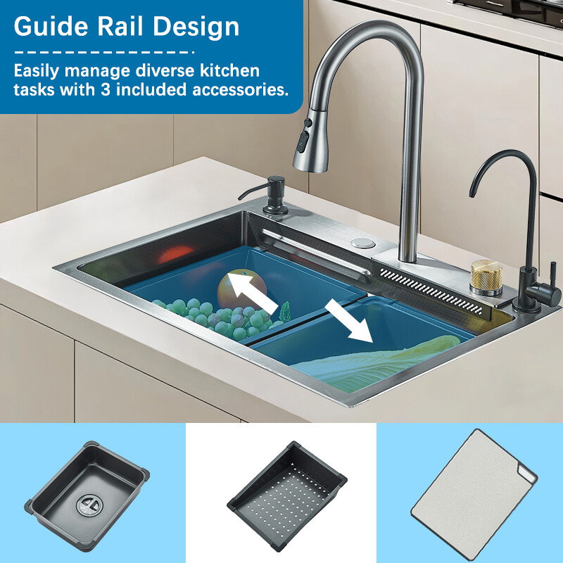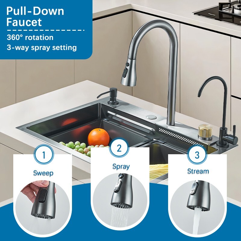 Flying Rain Stainless Steel Waterfall Kitchen Sink W/ Kitchen Faucet Single Bowl