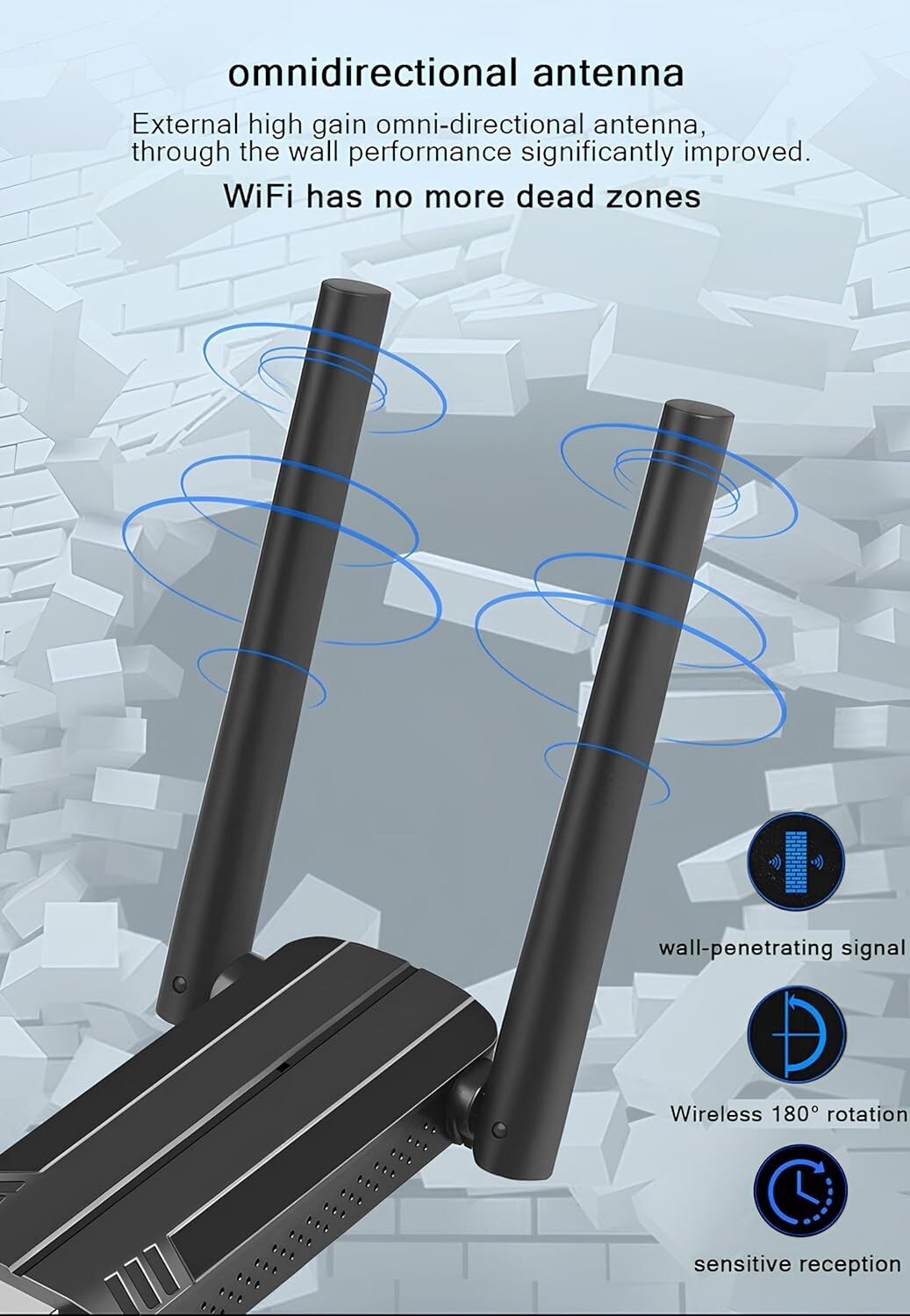 Wireless Network Adapter with 2x5dBi High Gain Antennas for Windows 11/10