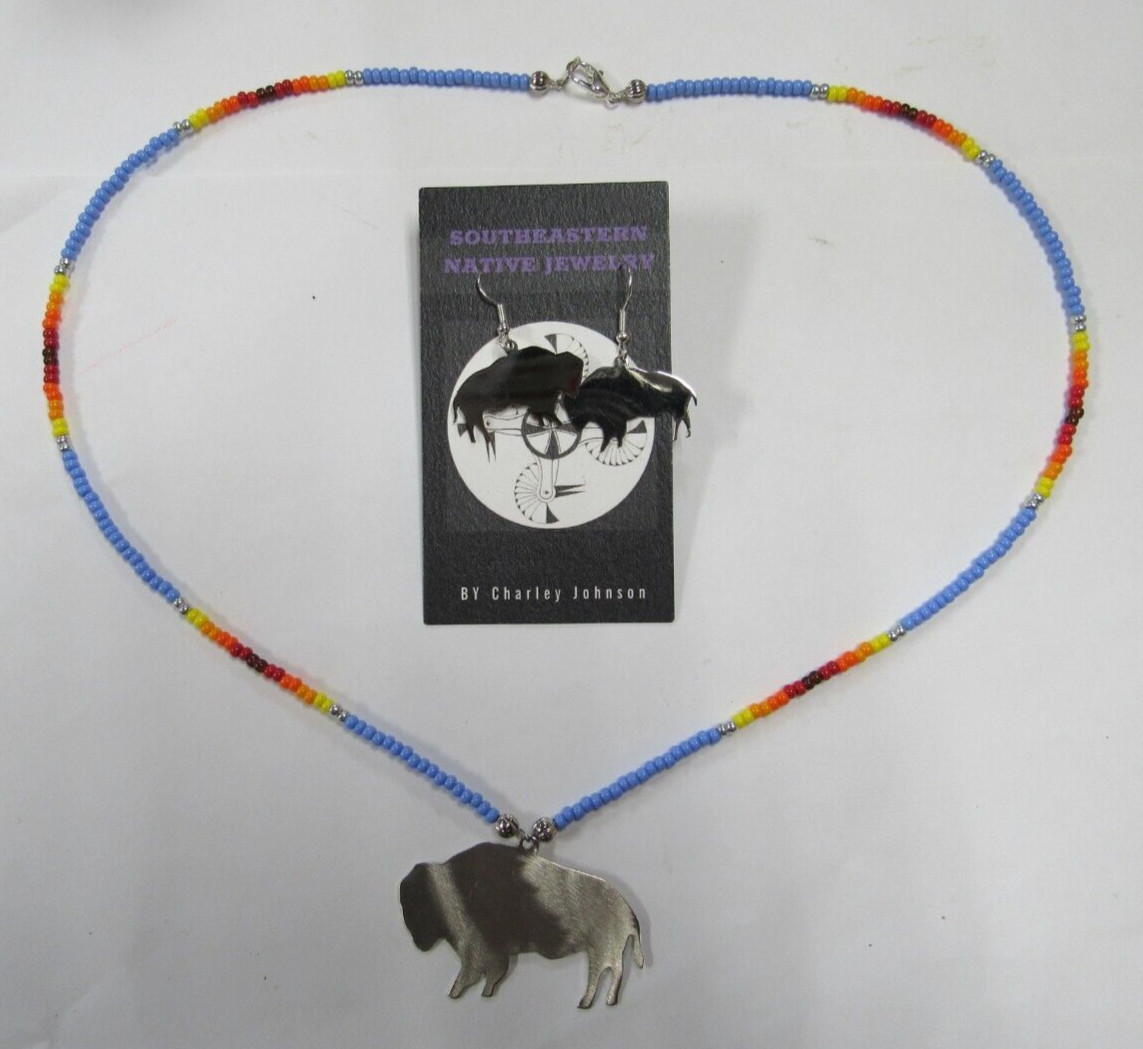 Native American Seminole Creek Buffalo Beaded Necklace Earrings 22 Set