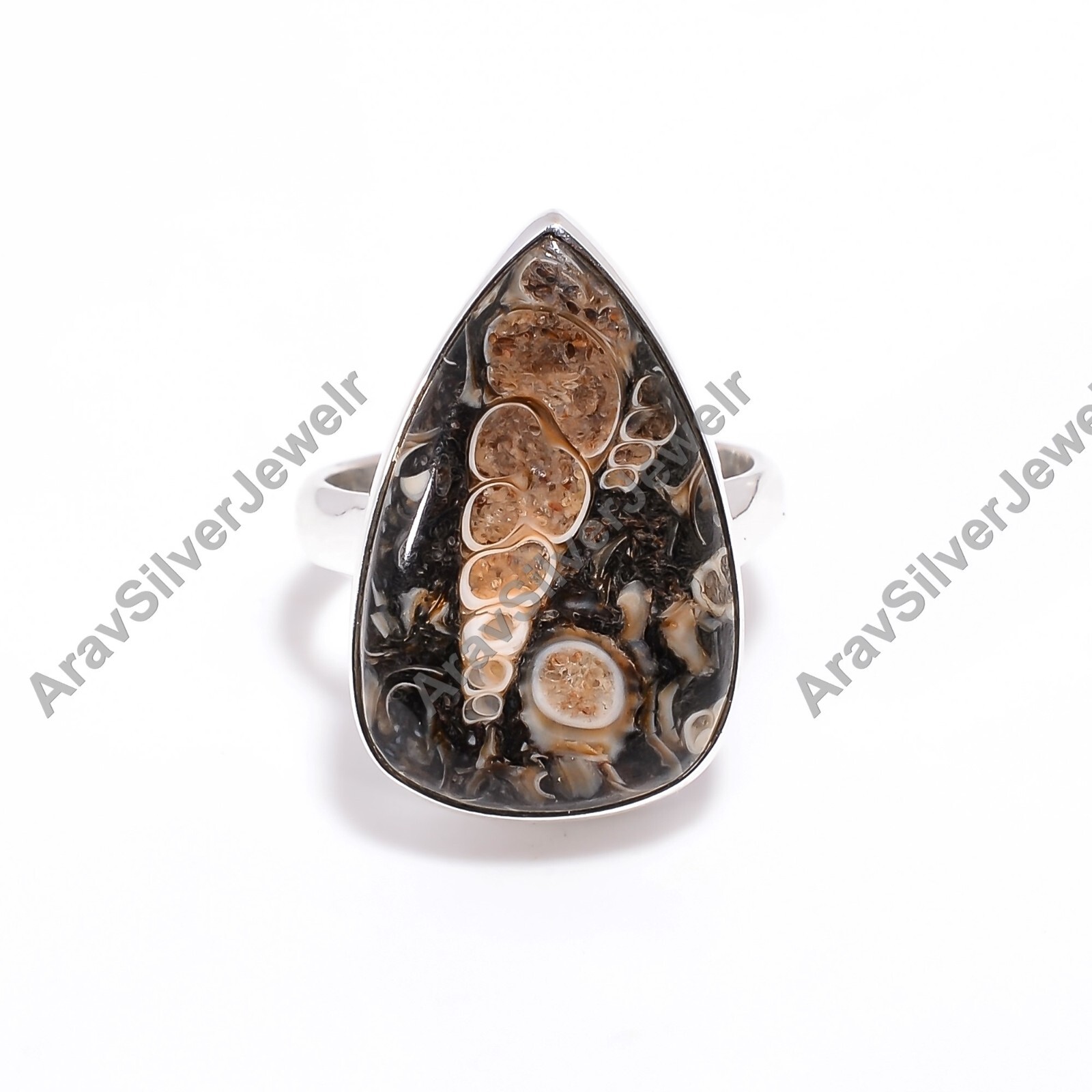 Turritella Agate Ring 925 Sterling Silver Statement Boho Rings Gift Jewelry