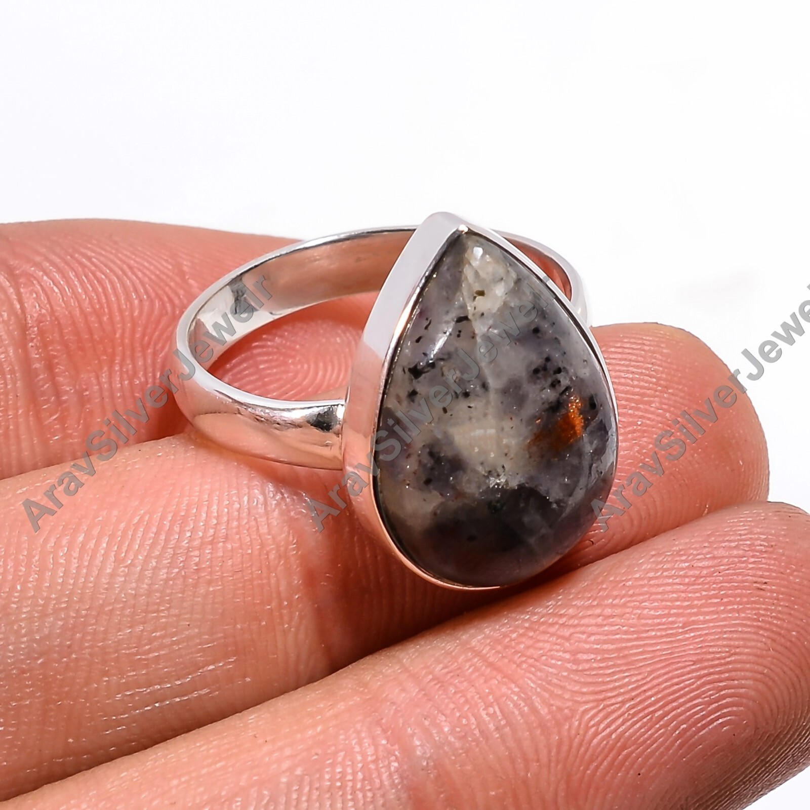 как выглядит Natural Iolite Sunstone Ring 925 Sterling Silver Boho Rings Jewelry Gift for Her фото
