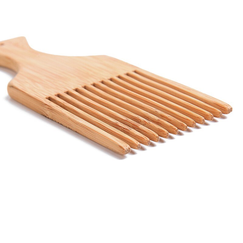 Customize Logo-Bamboo Fork Comb Pick Comb afro Beard Comb Wide Tooth grooming