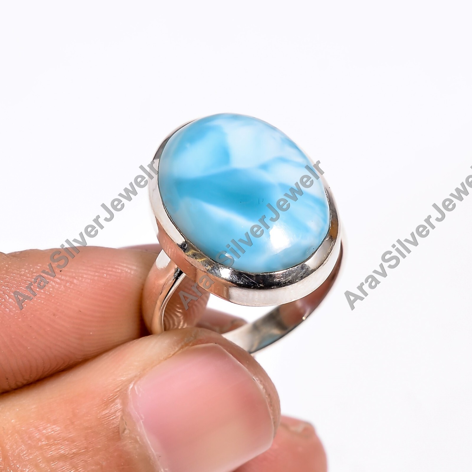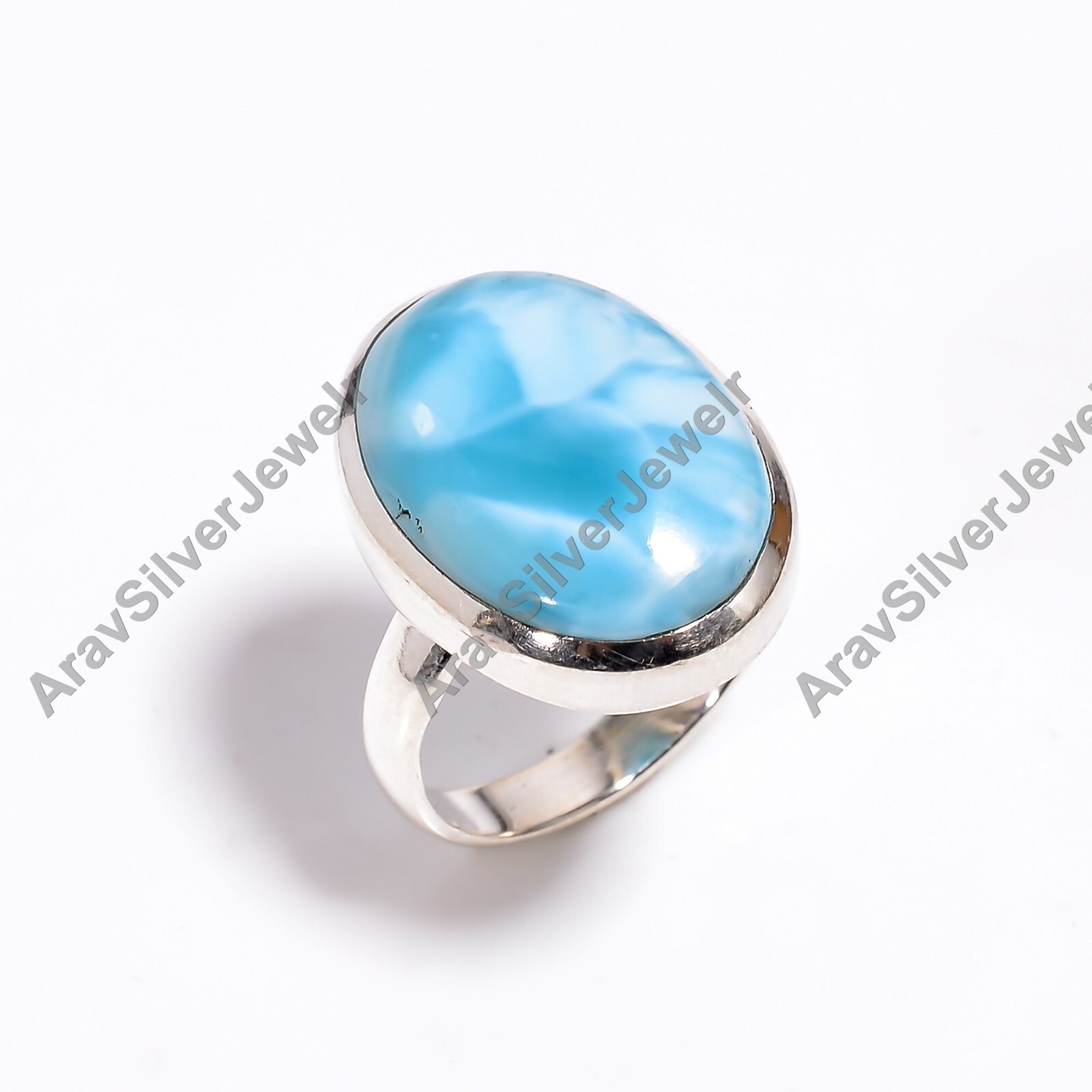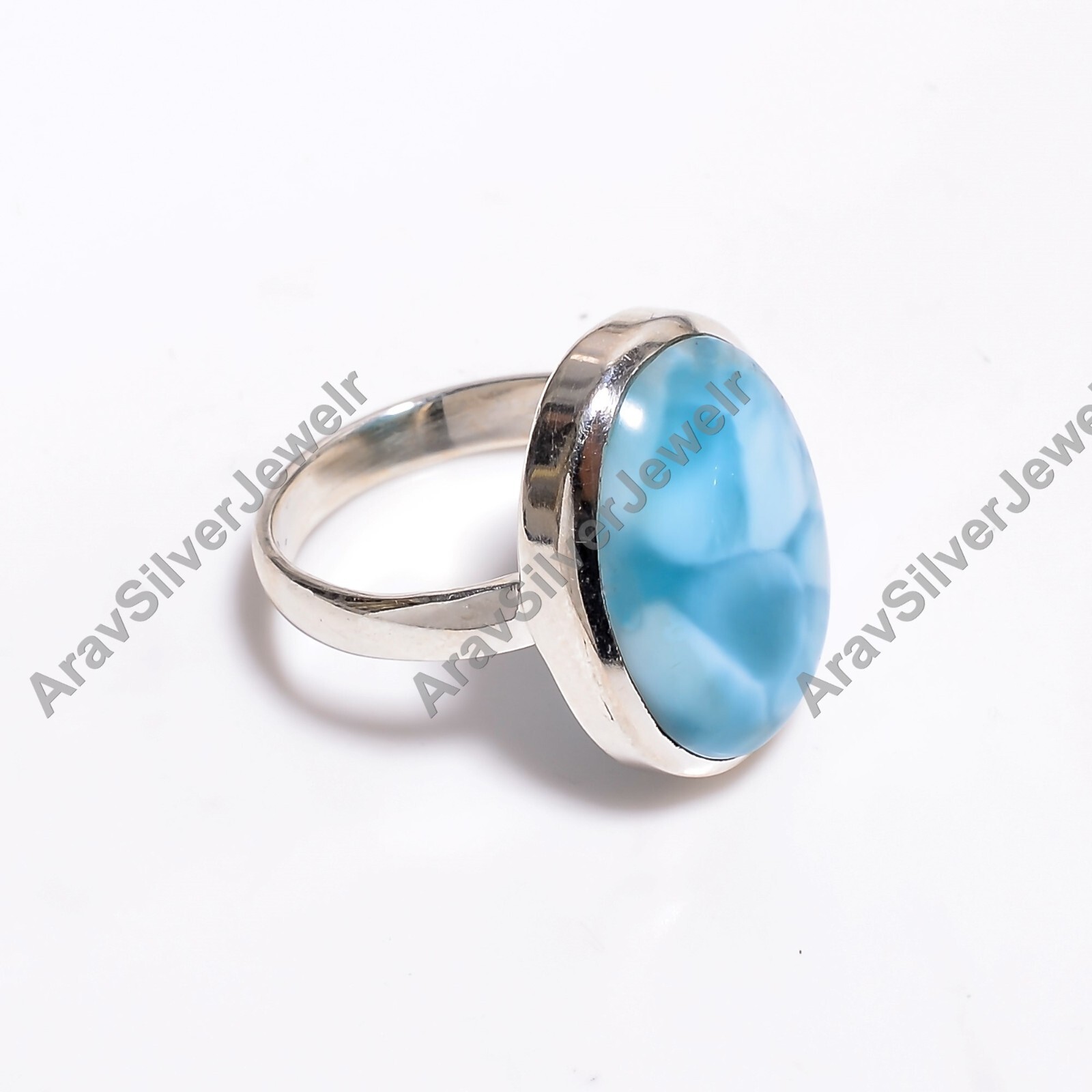 Natural Larimar Gemstone Ring 925 Sterling Silver Boho Rings Gift Jewelry Women