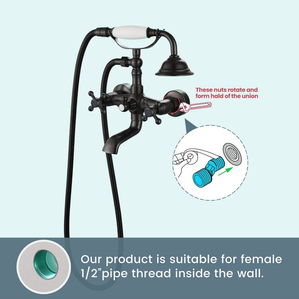 Oil Rubbed Bronze Clawfoot Tub Faucet with Hand Shower Wall Mount Bathtub Filler