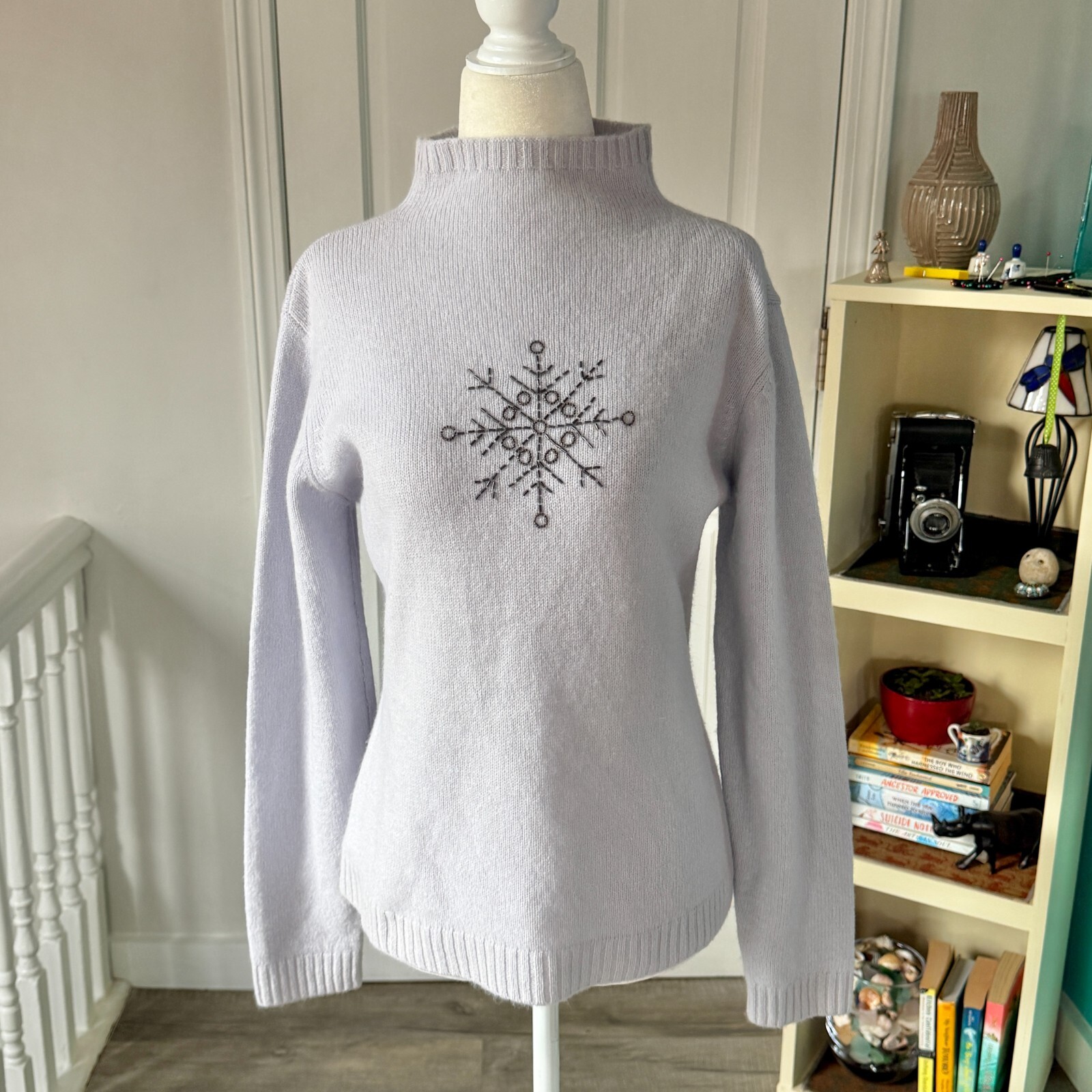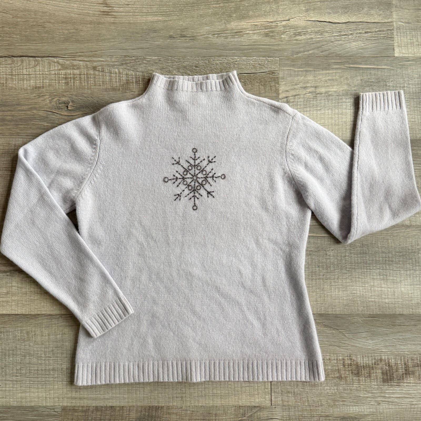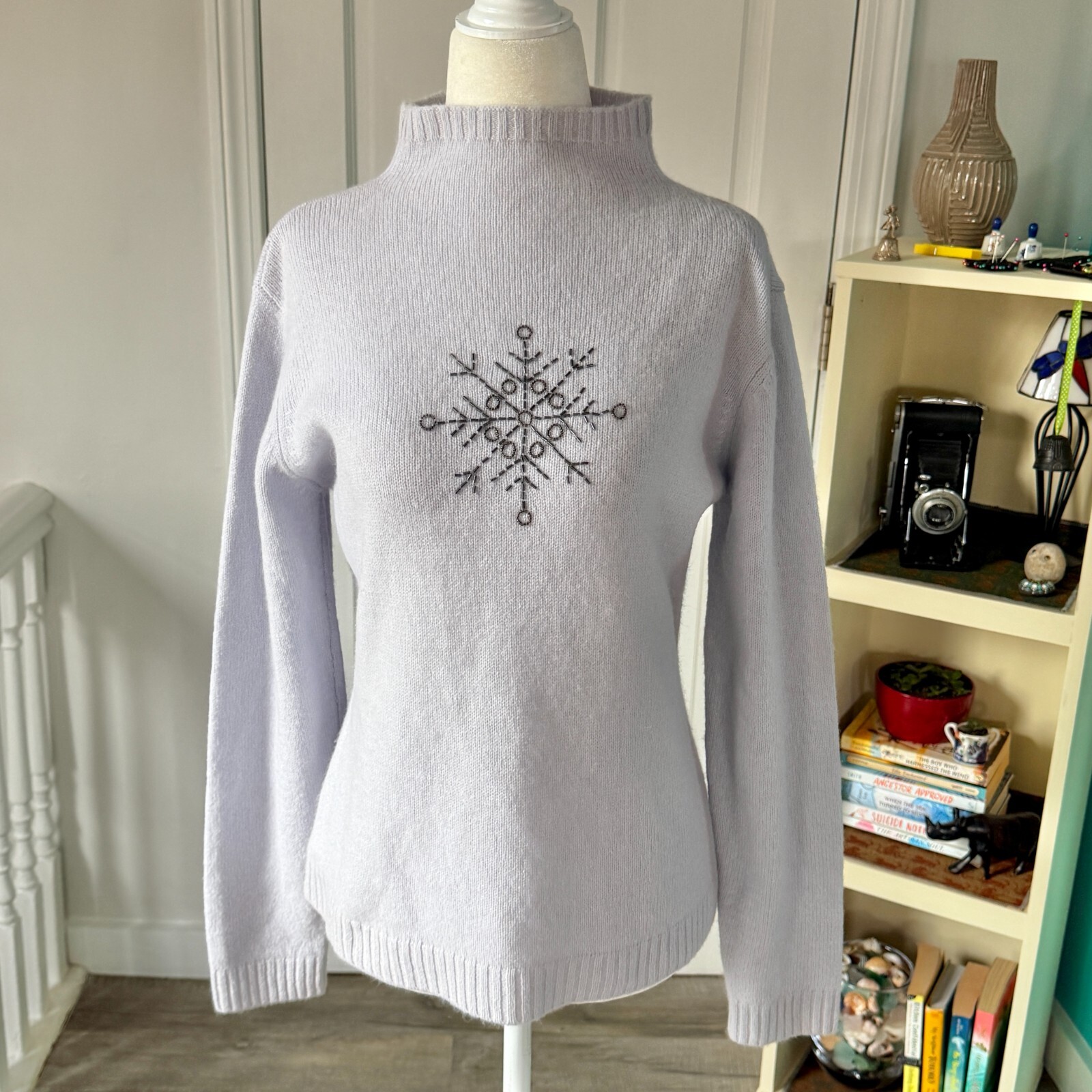 как выглядит Vintage Lambswool/Angora Blend Snowflake Sweater with Beading Detail size M фото