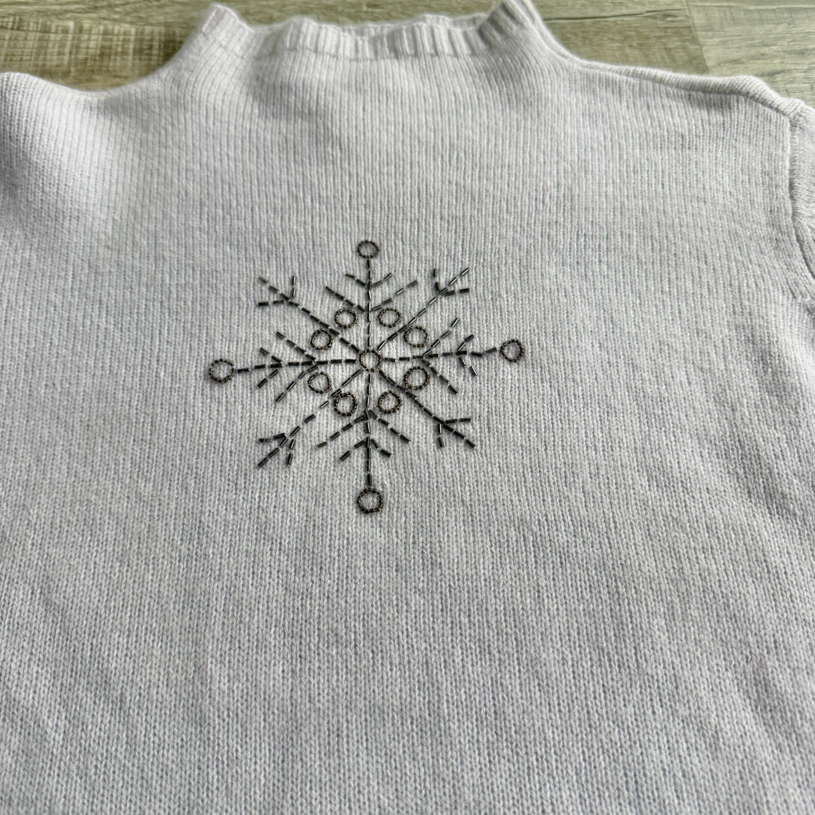 Vintage Lambswool/Angora Blend Snowflake Sweater with Beading Detail size M