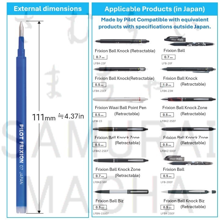 3 pcs PILOT FRIXION ERASABLE BALL POINT GEL PEN REFILL Blue 0.7mm Fine