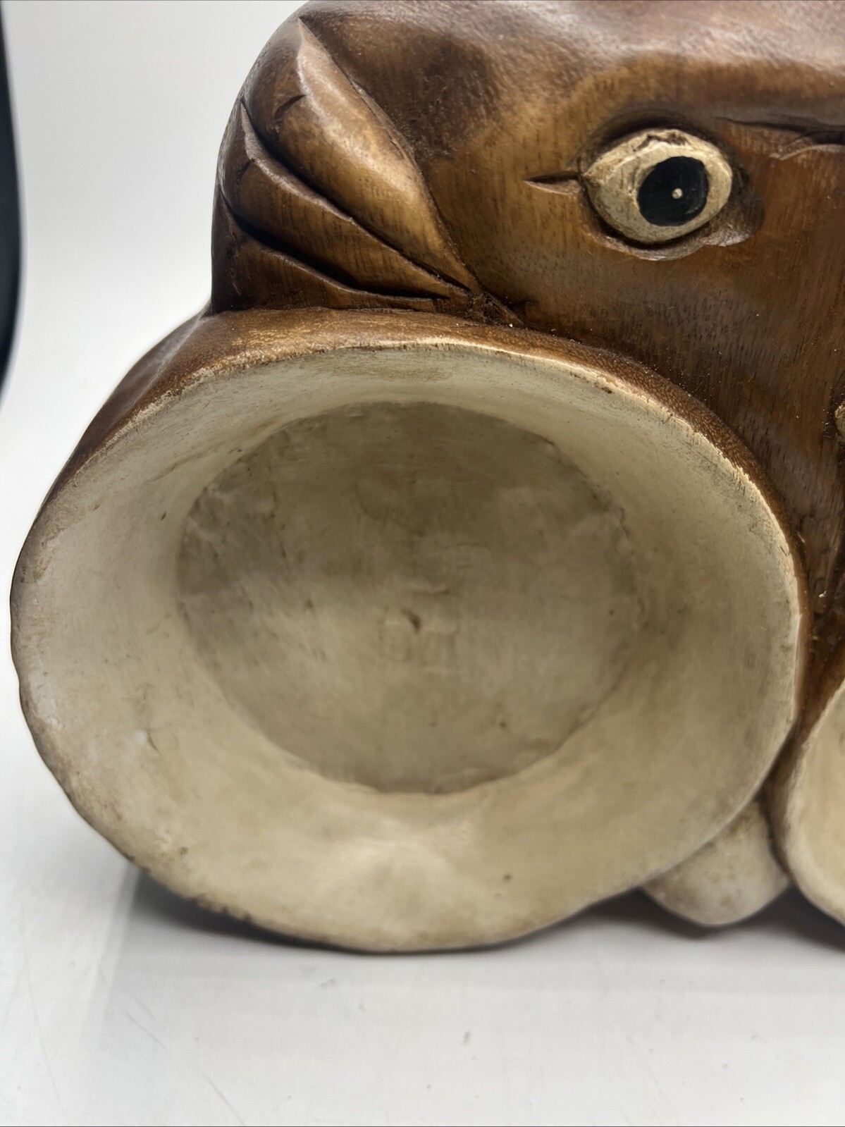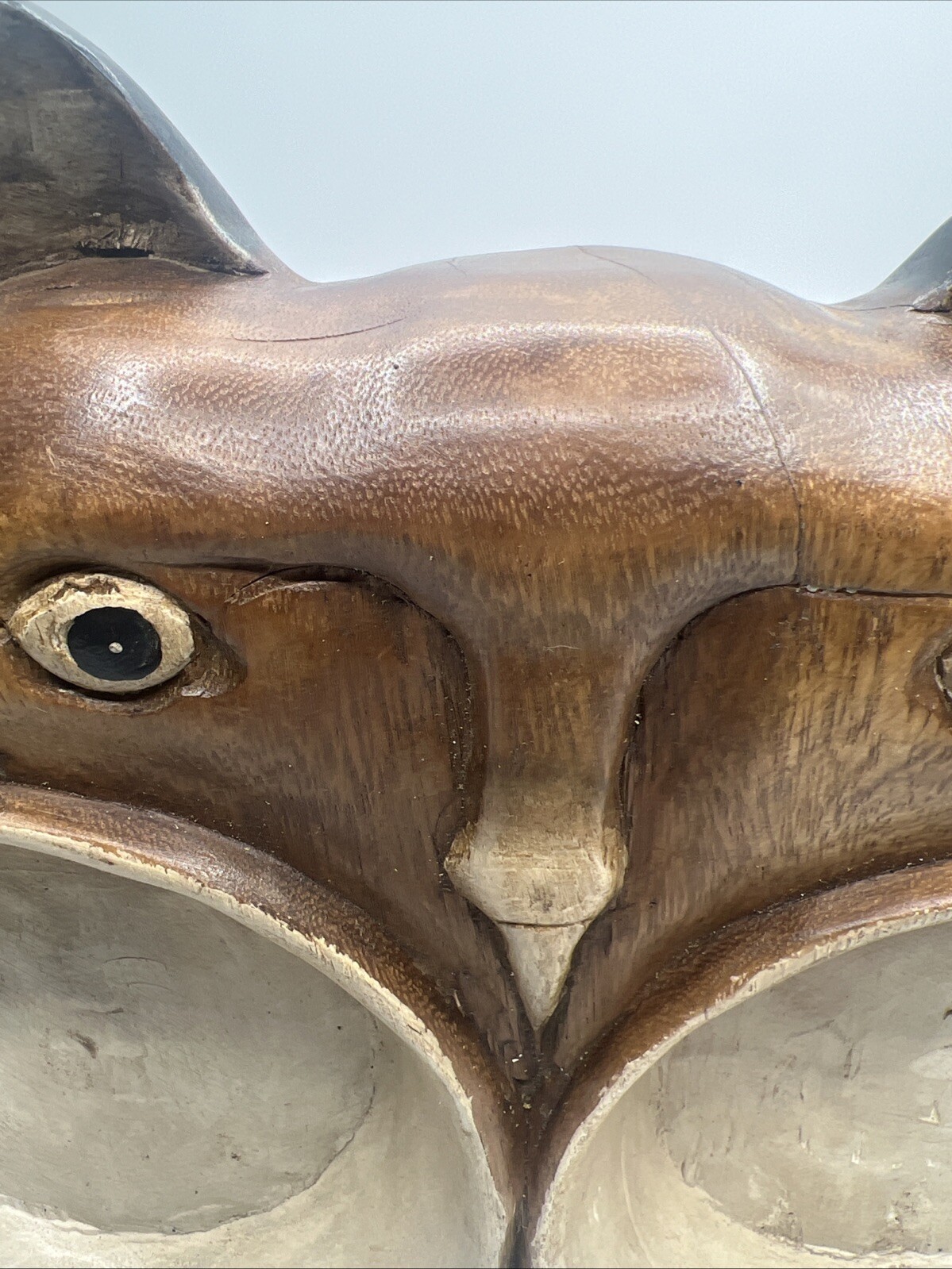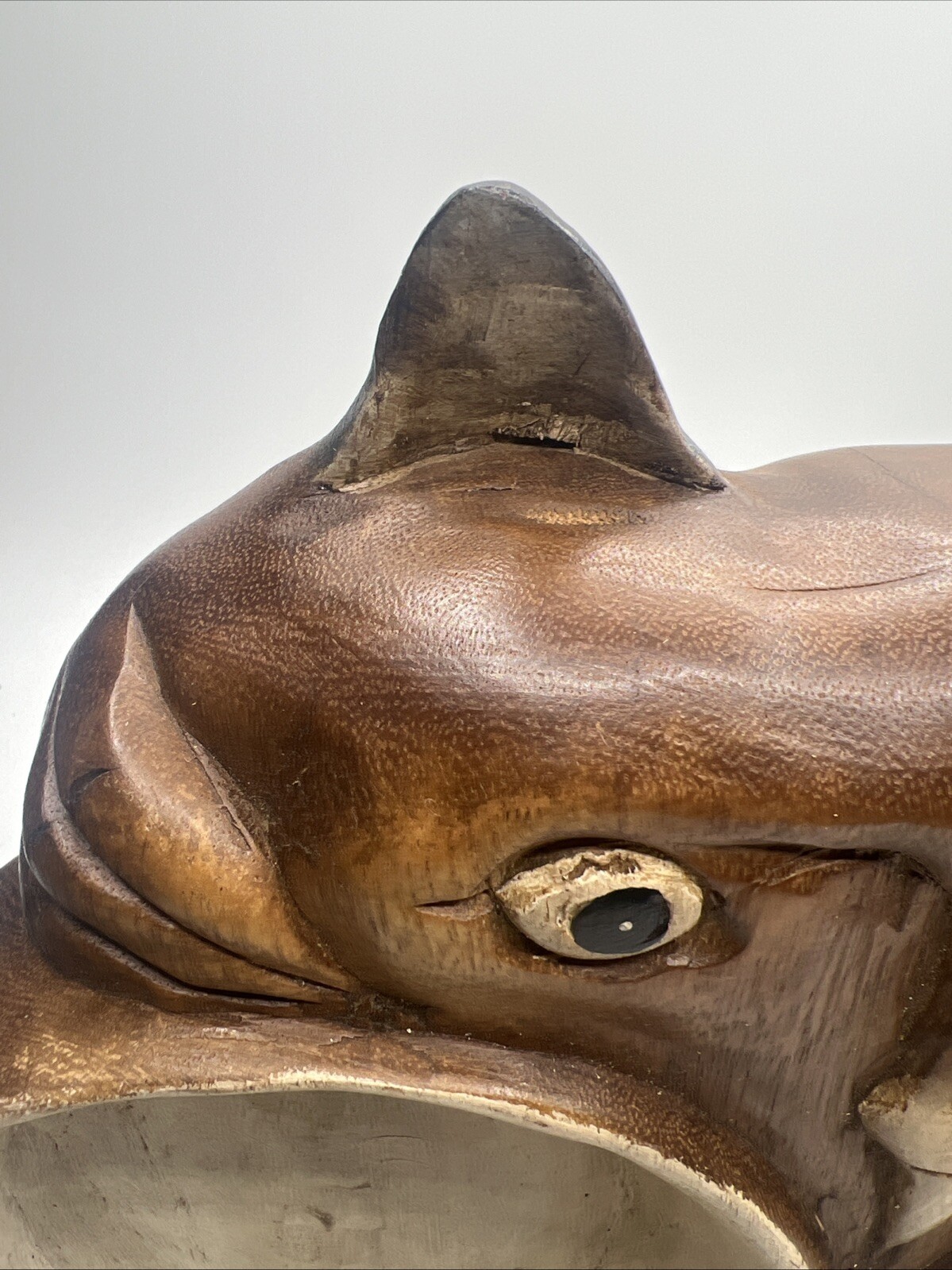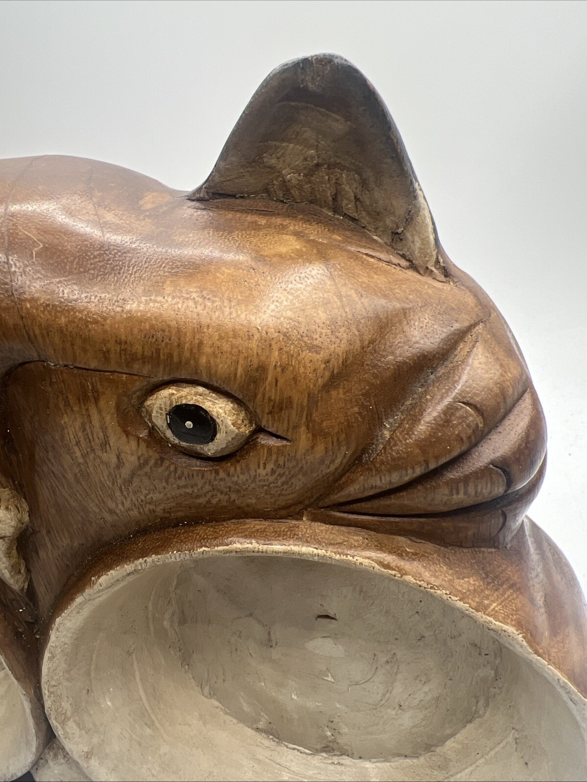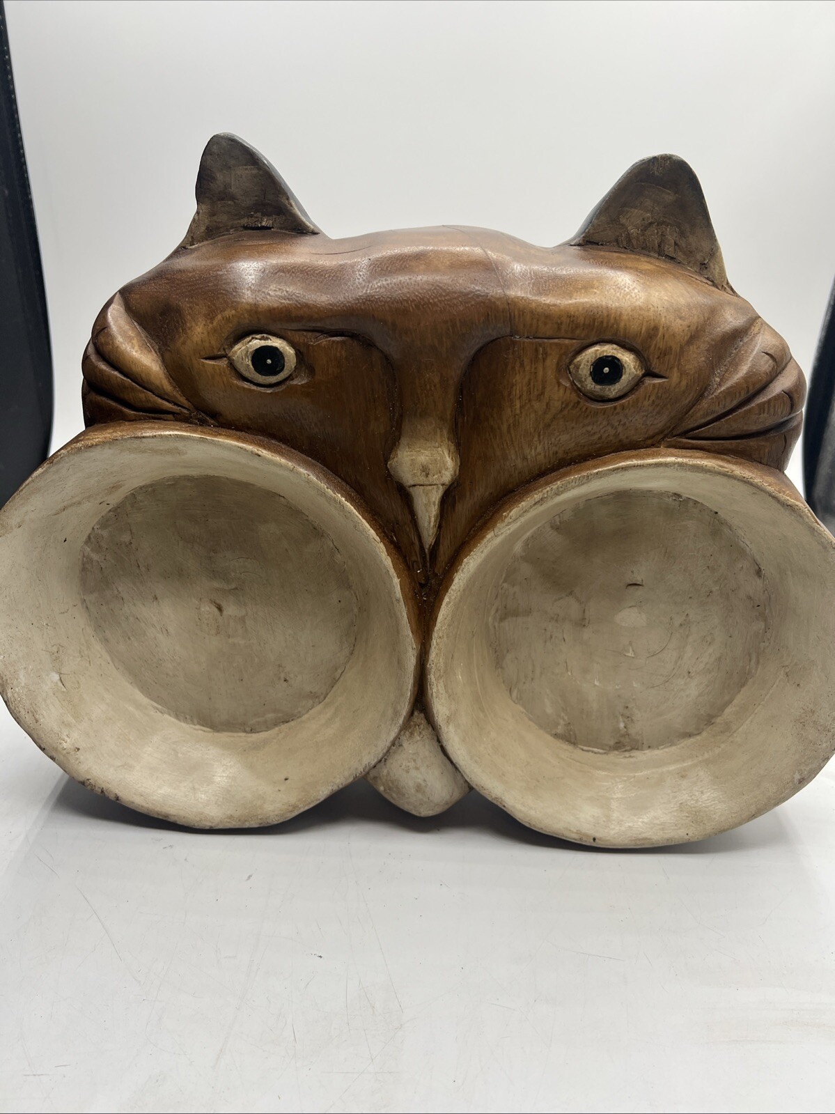 Carved Wood Cat Double Food Water Bowl Trinket Dish Rustic Original