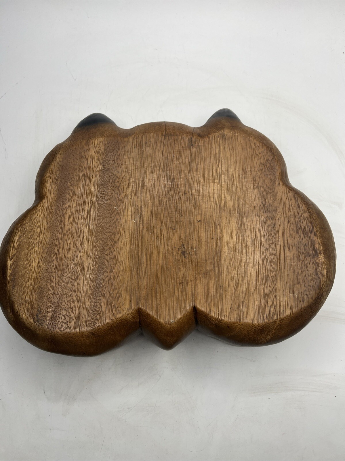как выглядит Carved Wood Cat Double Food Water Bowl Trinket Dish Rustic Original фото