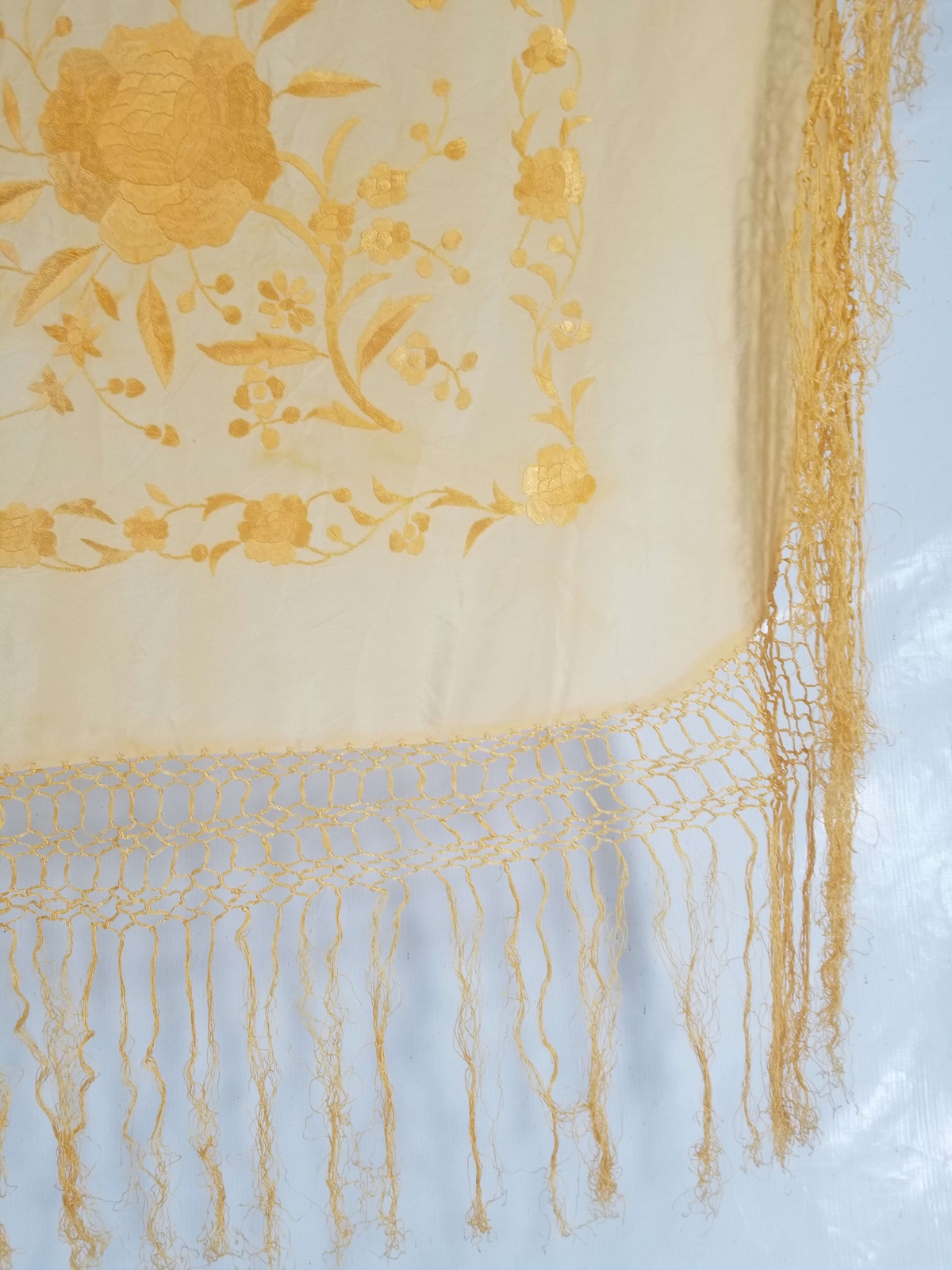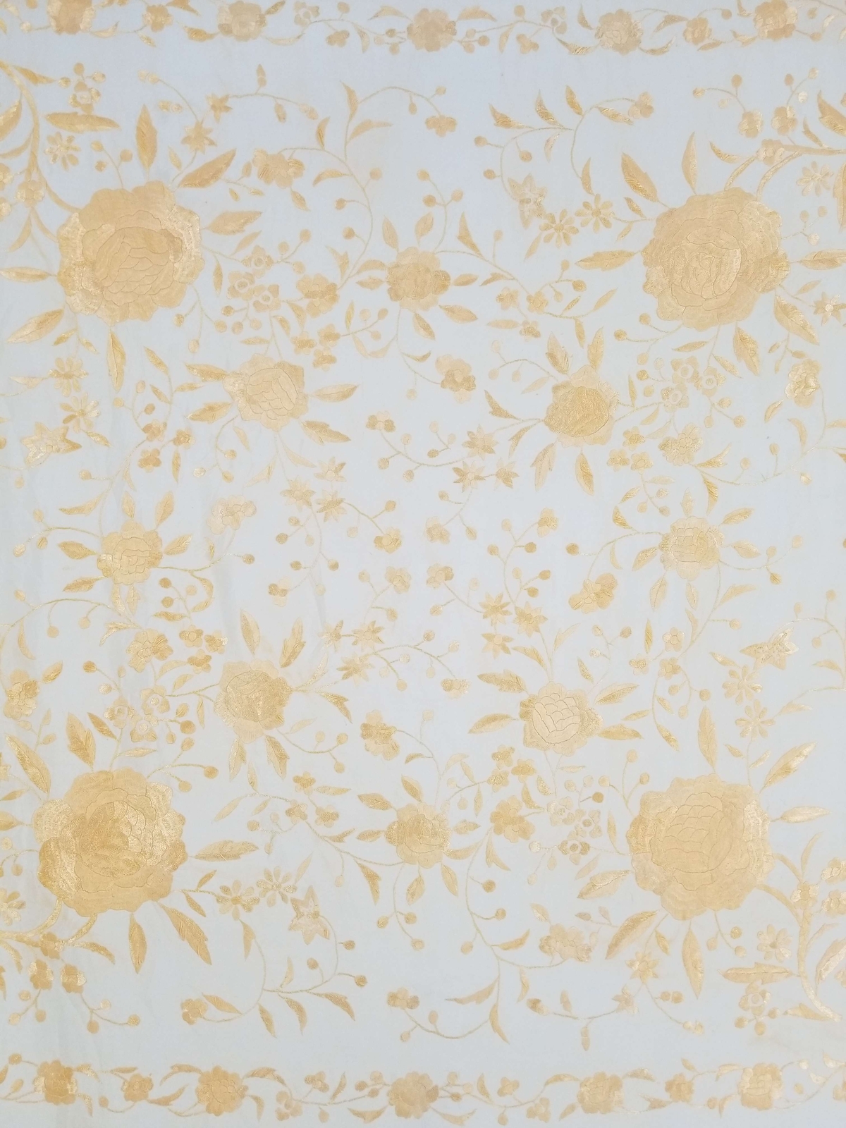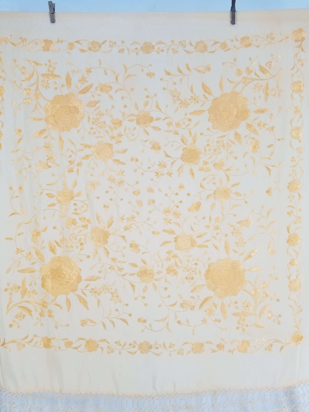 Vintage Chinese Hand Embroidered Silk Floral Piano Shawl 112x105cm