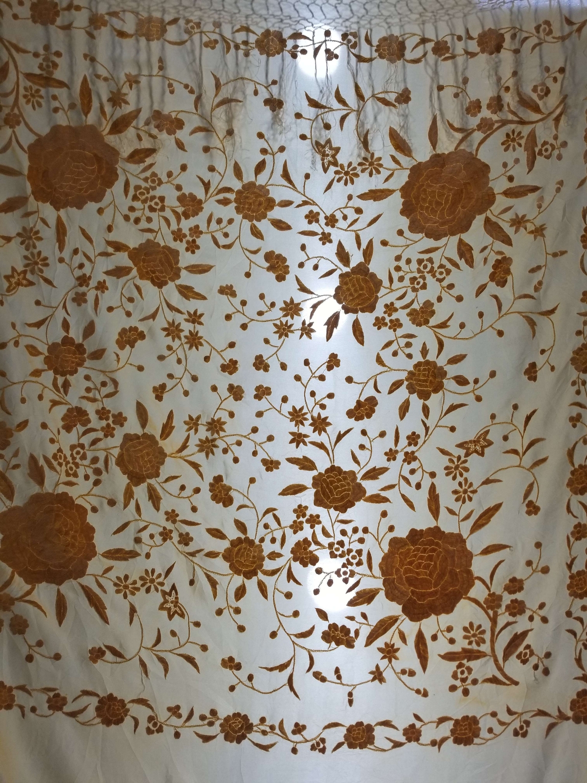 как выглядит Vintage Chinese Hand Embroidered Silk Floral Piano Shawl 112x105cm фото