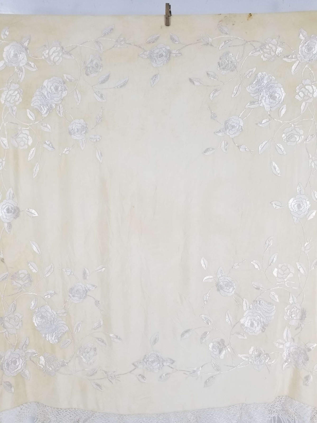 Vintage Chinese Hand Embroidered Silk Floral Piano Shawl 114x106cm