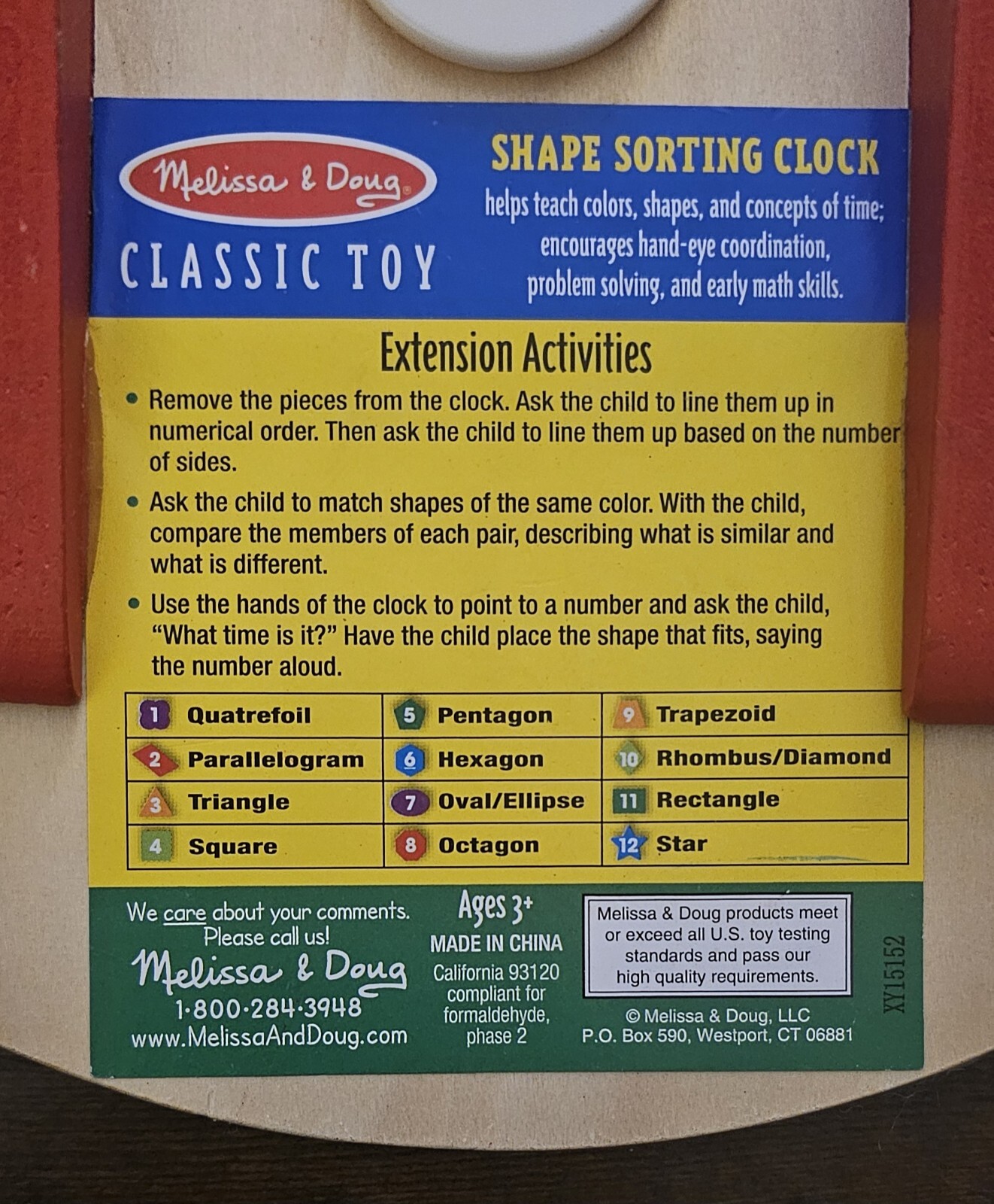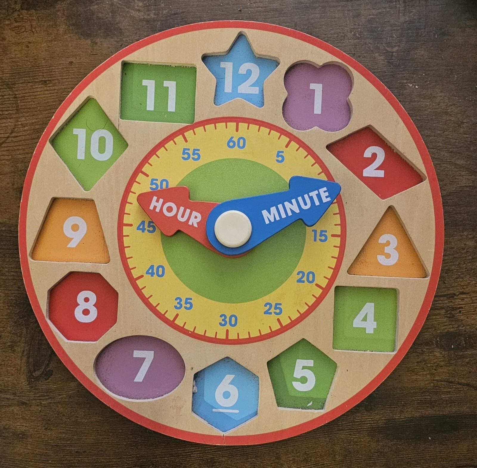 как выглядит Melissa Doug Classic Toy Shape Sorting Clock With Wooden Number Blocks фото