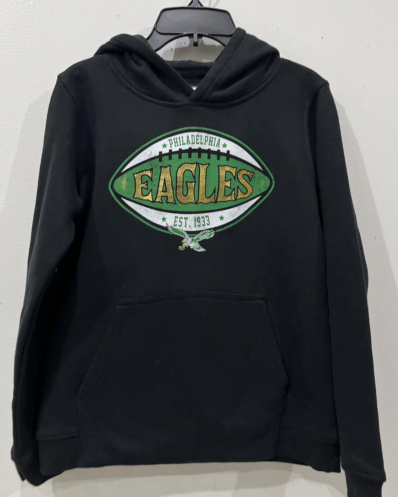 NFL Philadelphia Eagles Boys Size 10-12 black hooded sweatshirt Gold Logo NWT