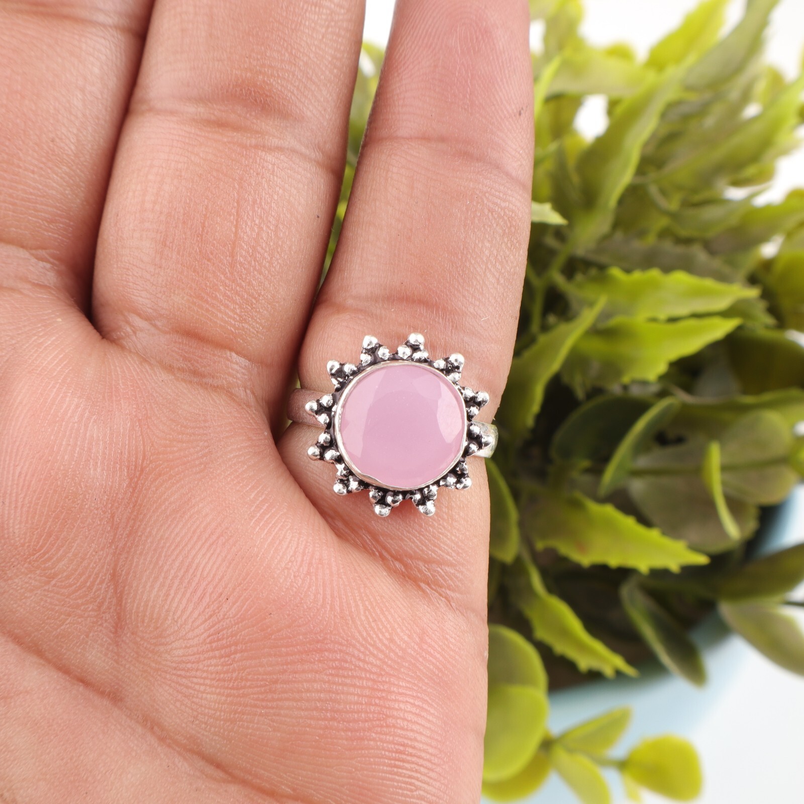 Rose Chalcedony Gemstone 925 Statement Silver Handmade Jewelry Ring Gift For Her