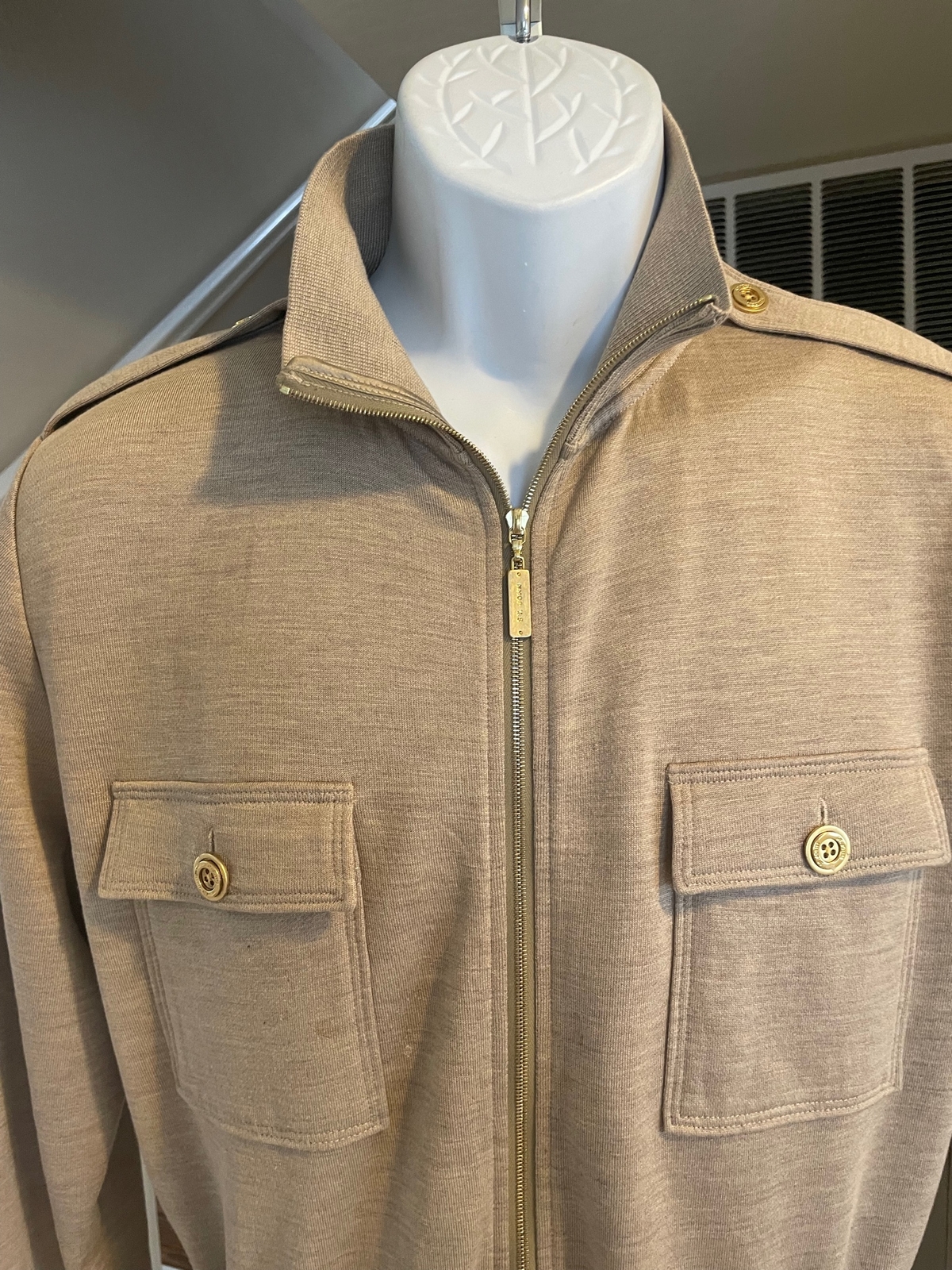 как выглядит St John Yellow Label Soft Silk Cotton Tan Jacket Gold Signature Buttons M фото