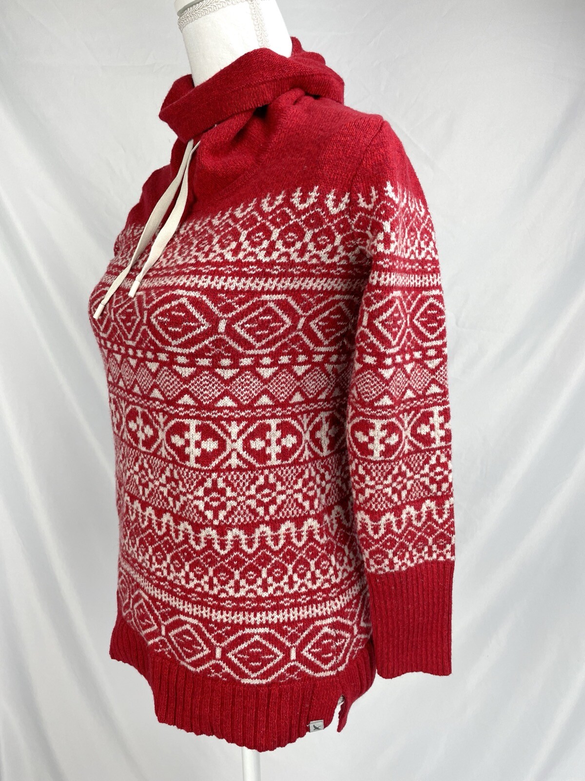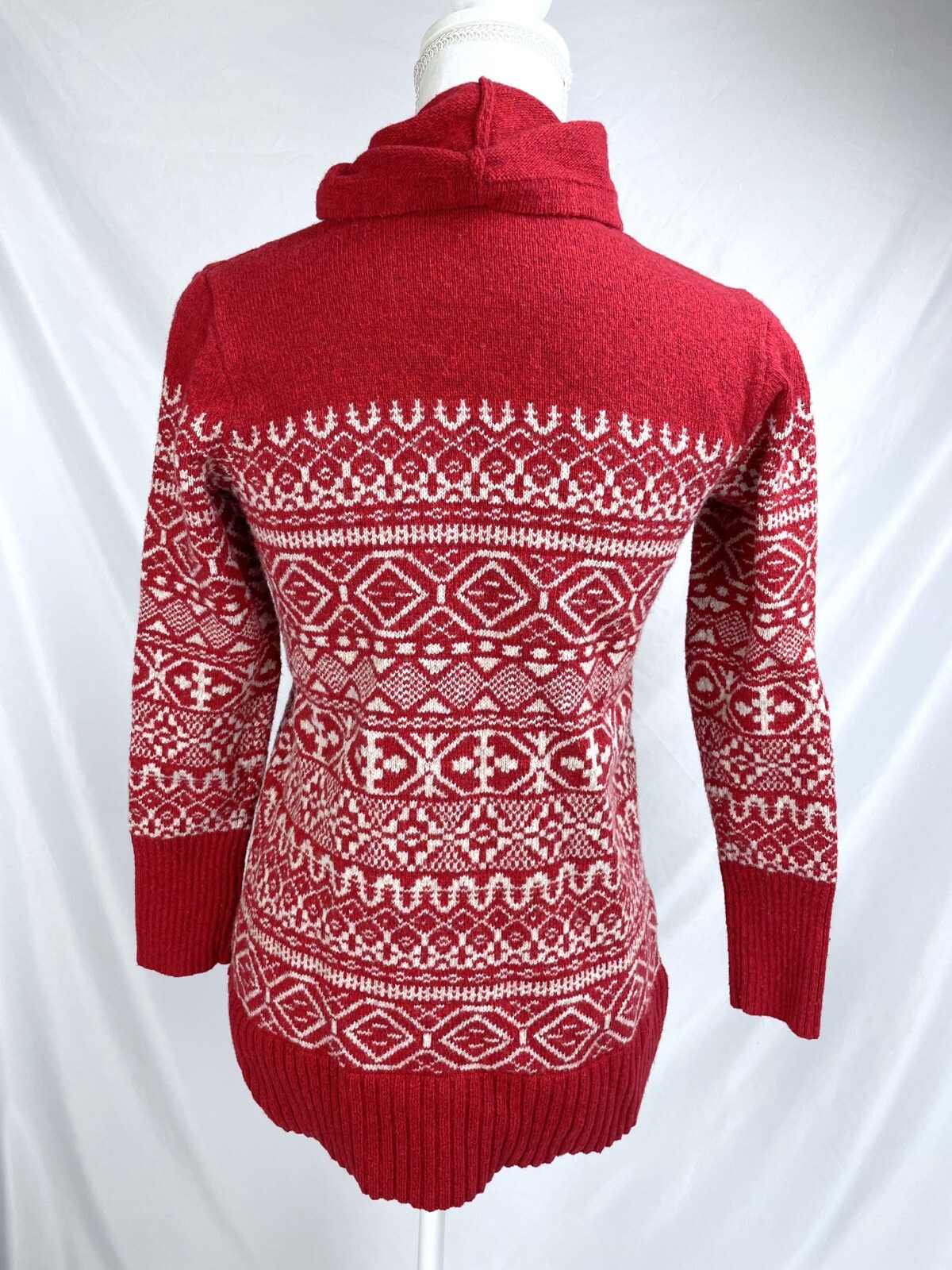 Eddie Bauer Women XS Red White Nordic Fair Isle Sweater Cotton Wool Blend