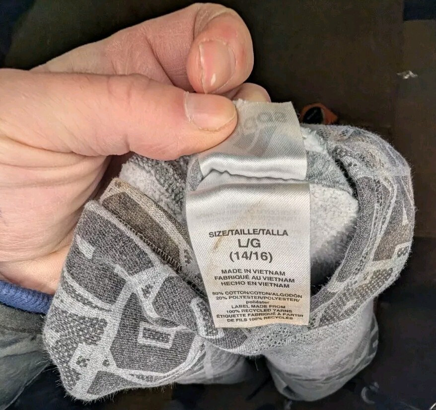Youth Boys Adidas Logo Hoodie Sweatshirt Large 14/16 Black White Logo Print