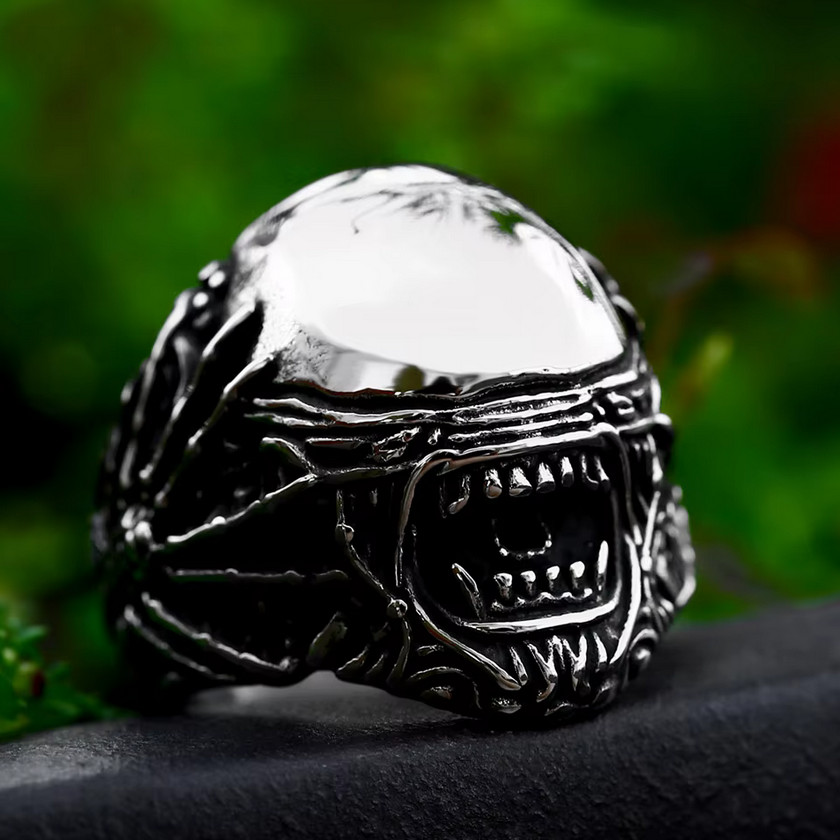 Men's Quality Stainless Steel Spider Alien Skull Retro Ring