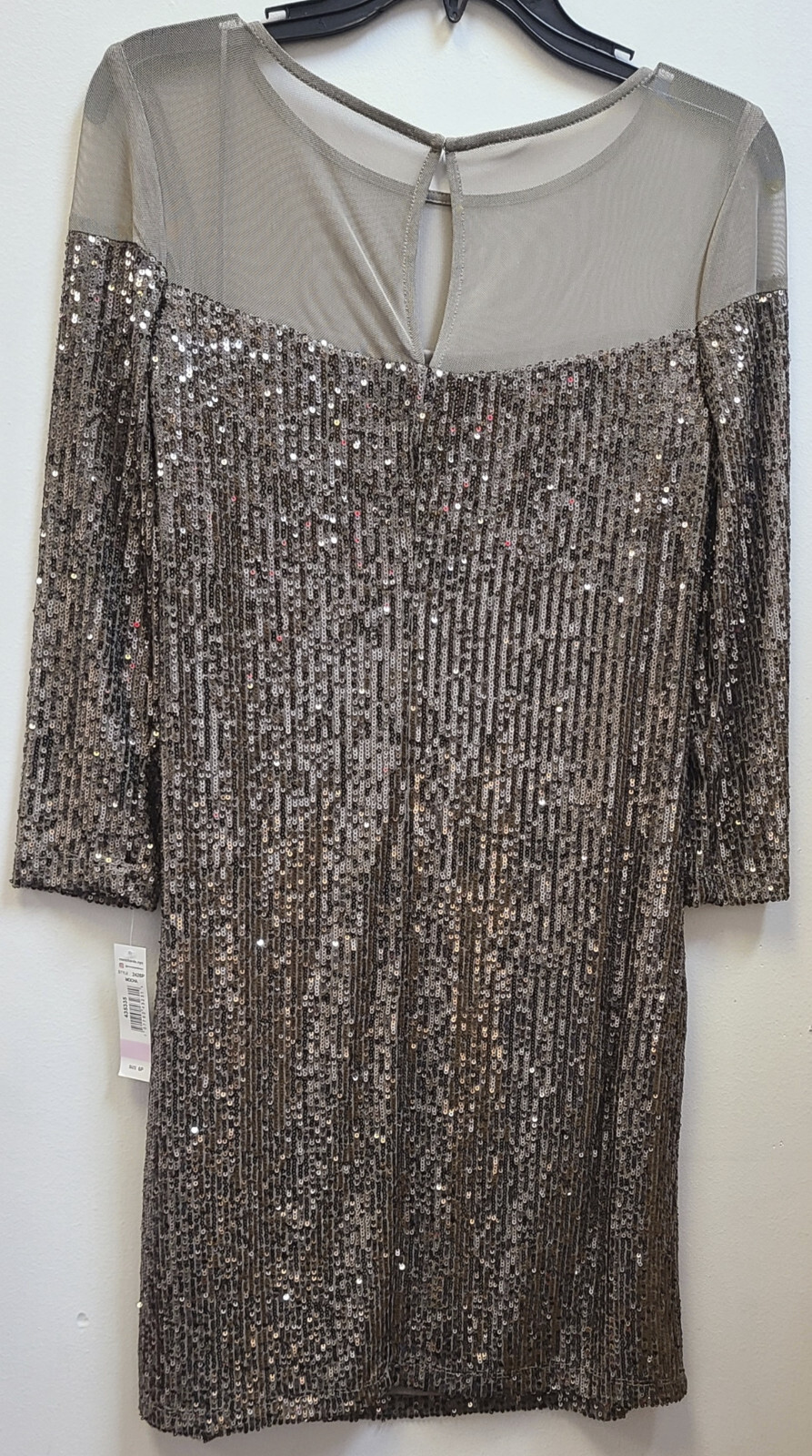 как выглядит R M Richards Short Lined Sequin Dress Illusion Bodice MOCHA 6P Style 2428P 314 фото