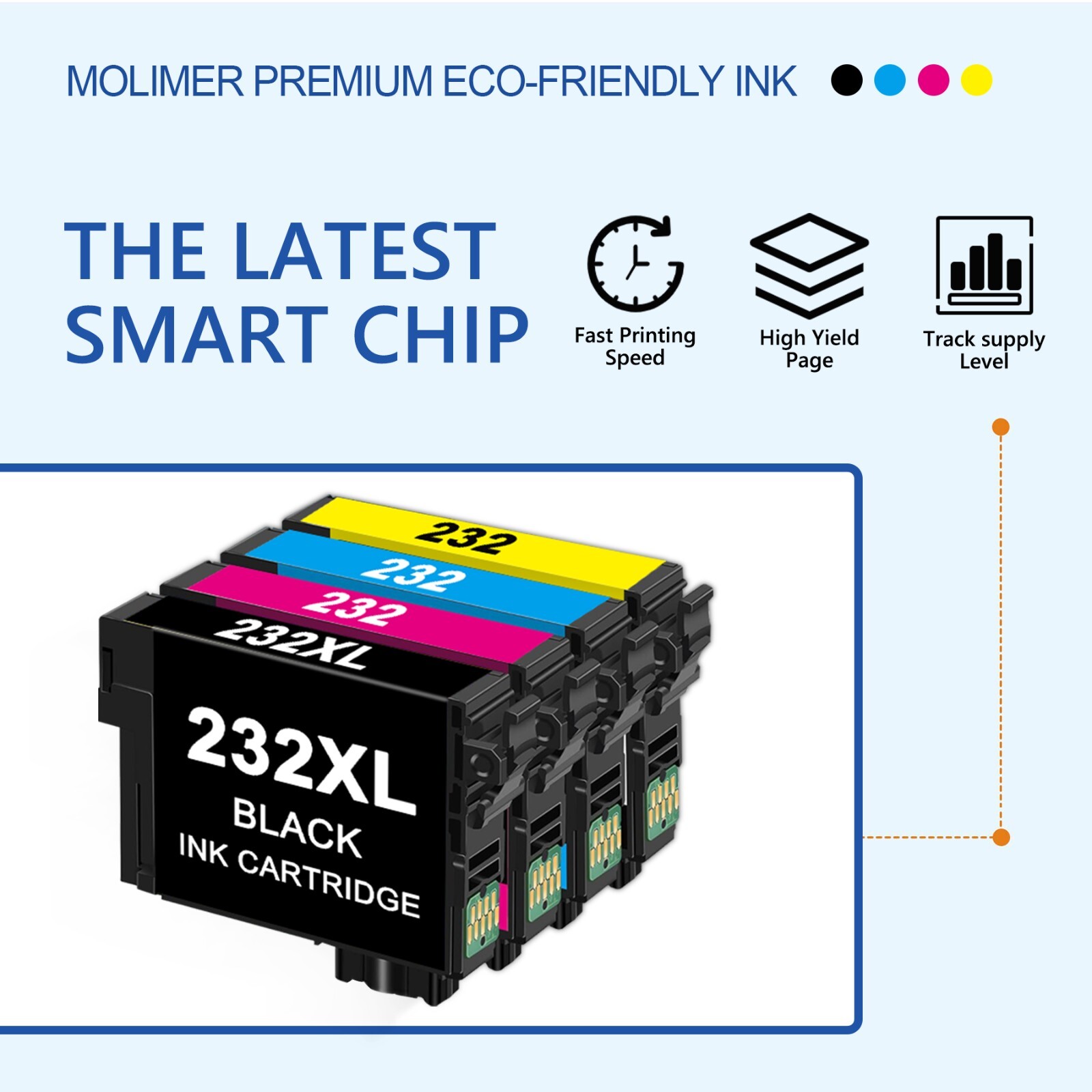 232XL Ink Cartridge Combo for Epson WF-2930 XP-4205 XP-4200 Printer 4-Pack