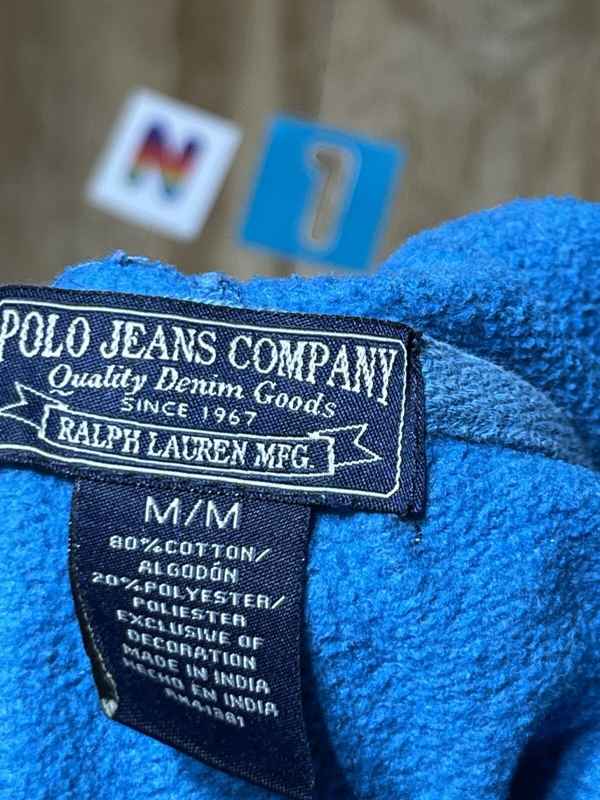 как выглядит Ralph Lauren Polo Jeans Co VTG 90s Medium Hoodie Sweatshirt N1 Blue Pullover фото