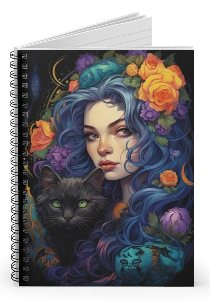 Witchy Fantasy Spiral Notebook - Ruled Line, Art Journal, book of shadows, 6x8
