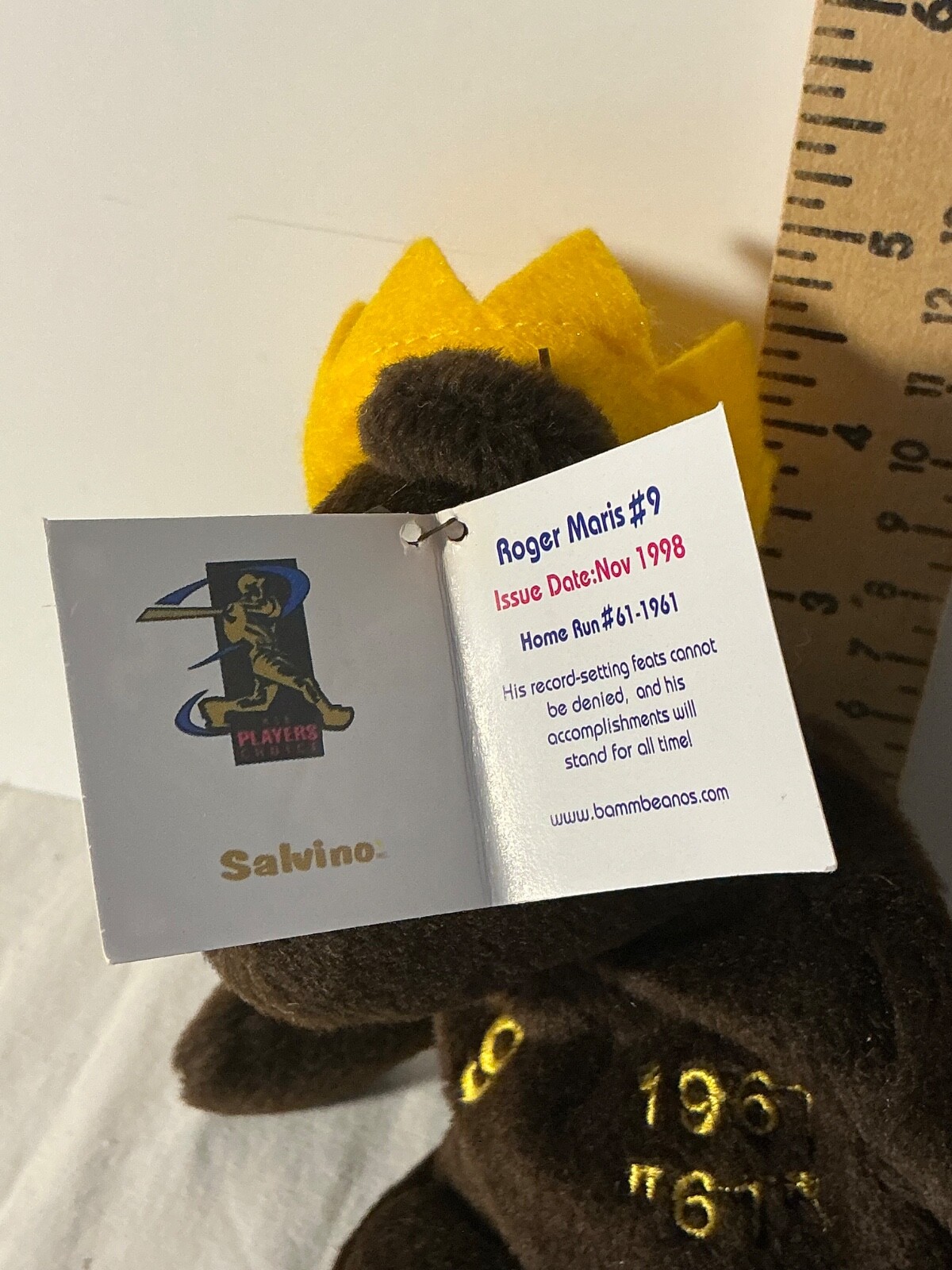 1998 Salvino's Bamm Beanos Roger Maris 9 Brown Bear Plush Bean Bag